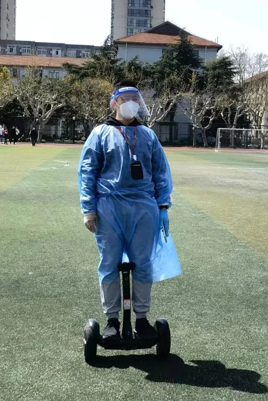 很少见到“真面目”的杨兴龙老师,打从认识他起,大白、小蓝便是他的日常服装,平衡车、拖板车、电三轮是他的常用工具,八栋宿舍楼的楼长,但凡需要物资补给,第一想到的就是他,因为他总是有求必应,使命必达。