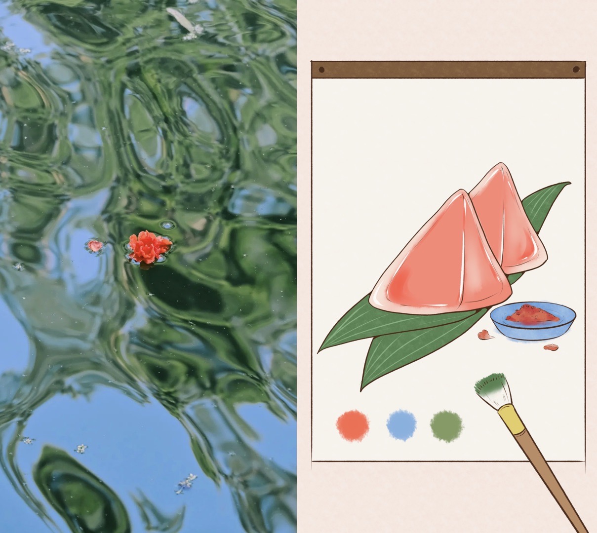 踱步来到河畔,水波清漾。一朵落英像一艘漂着的小小船儿,载着一只鲜花酱粽子的芬芳。