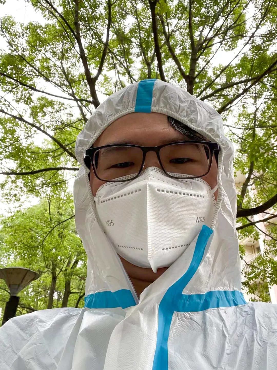 天气渐热了起来,她们穿着厚厚的防护服和我打招呼,我才认出她来。高亚敏老师还有个四五岁的孩子在家,我问她:累不累?她轻快地说:“痛并快乐着”。面屏和口罩遮挡了她的脸,但她应该是笑着的。