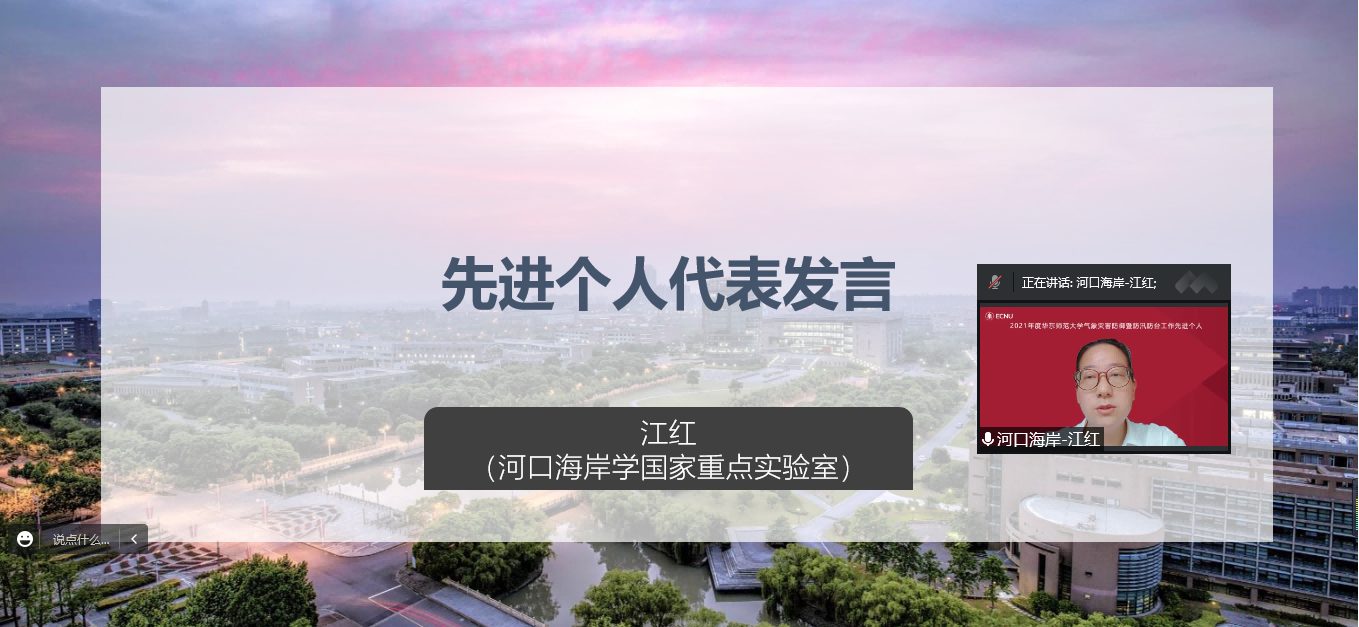 河口海岸学国家重点实验室江红老师作为先进个人代表交流发言