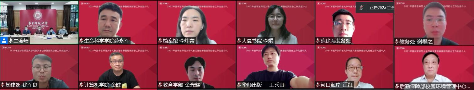 6月10日,华东师大2022年气象灾害防御暨防汛防台工作会议以线上线下相结合的方式召开。副校长、校气象灾害防御暨防汛防台工作领导小组组长戴立益出席会议并讲话。会议由后勤保障部副部长董镕主持。