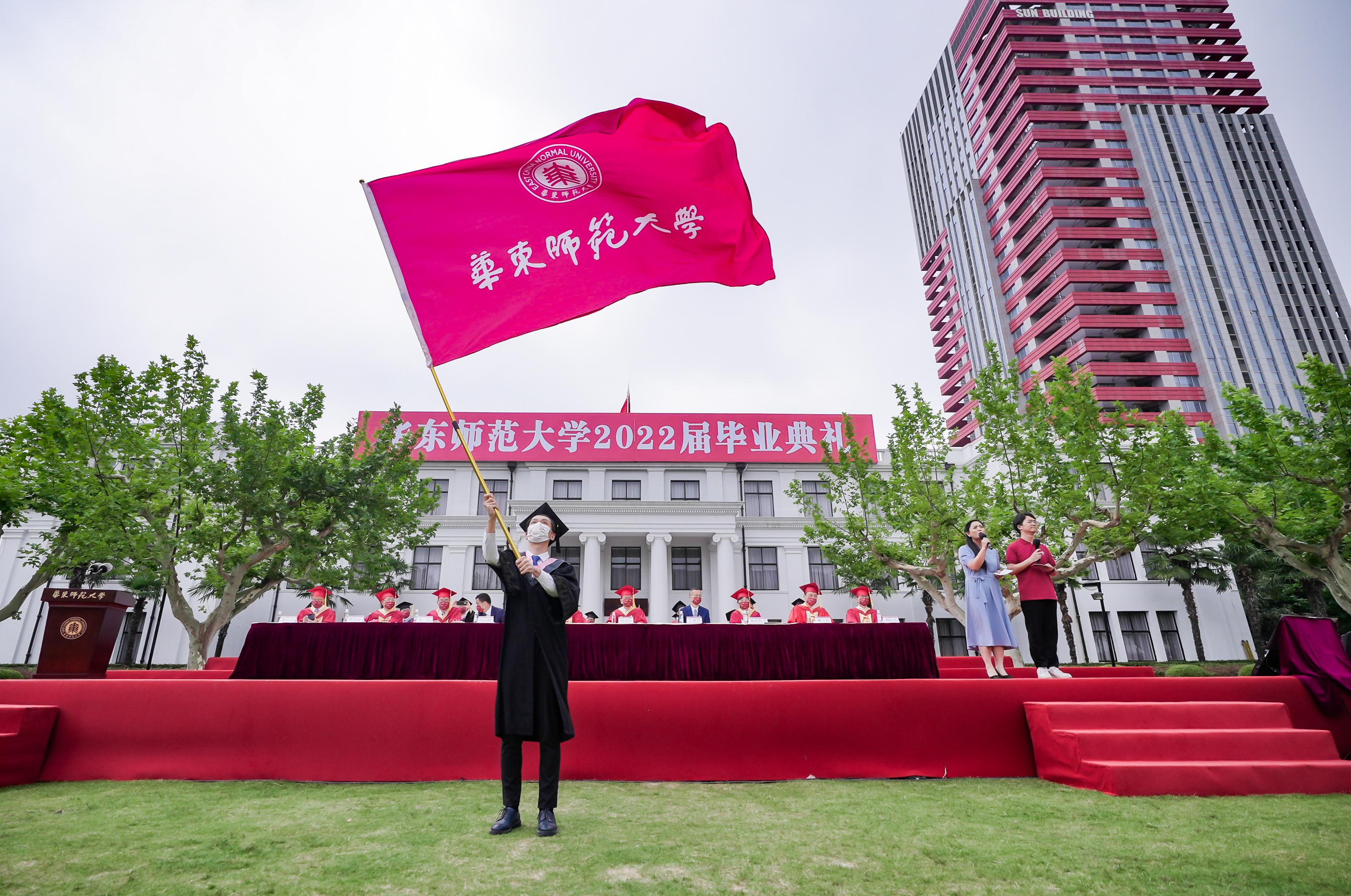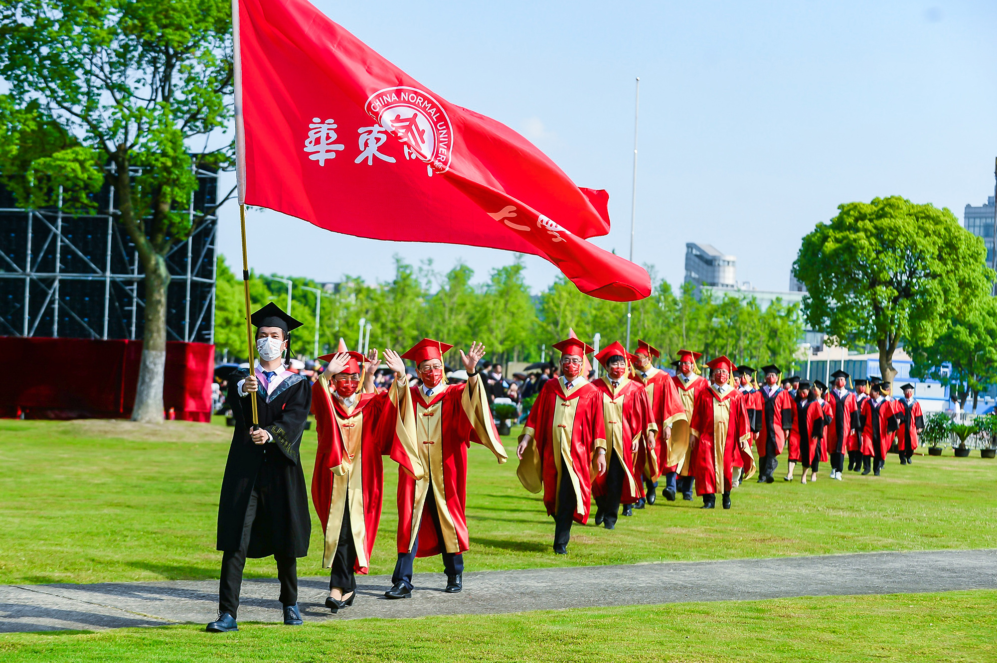 当疫情形势持续向好,为了让毕业生不留遗憾,一起现场见证他们人生重要时刻的喜悦与感动,华东师大克服重重困难,全力以赴在符合疫情防控要求的前提下举办隆重的草坪毕业典礼并同步线上直播,为毕业生扬帆启航。