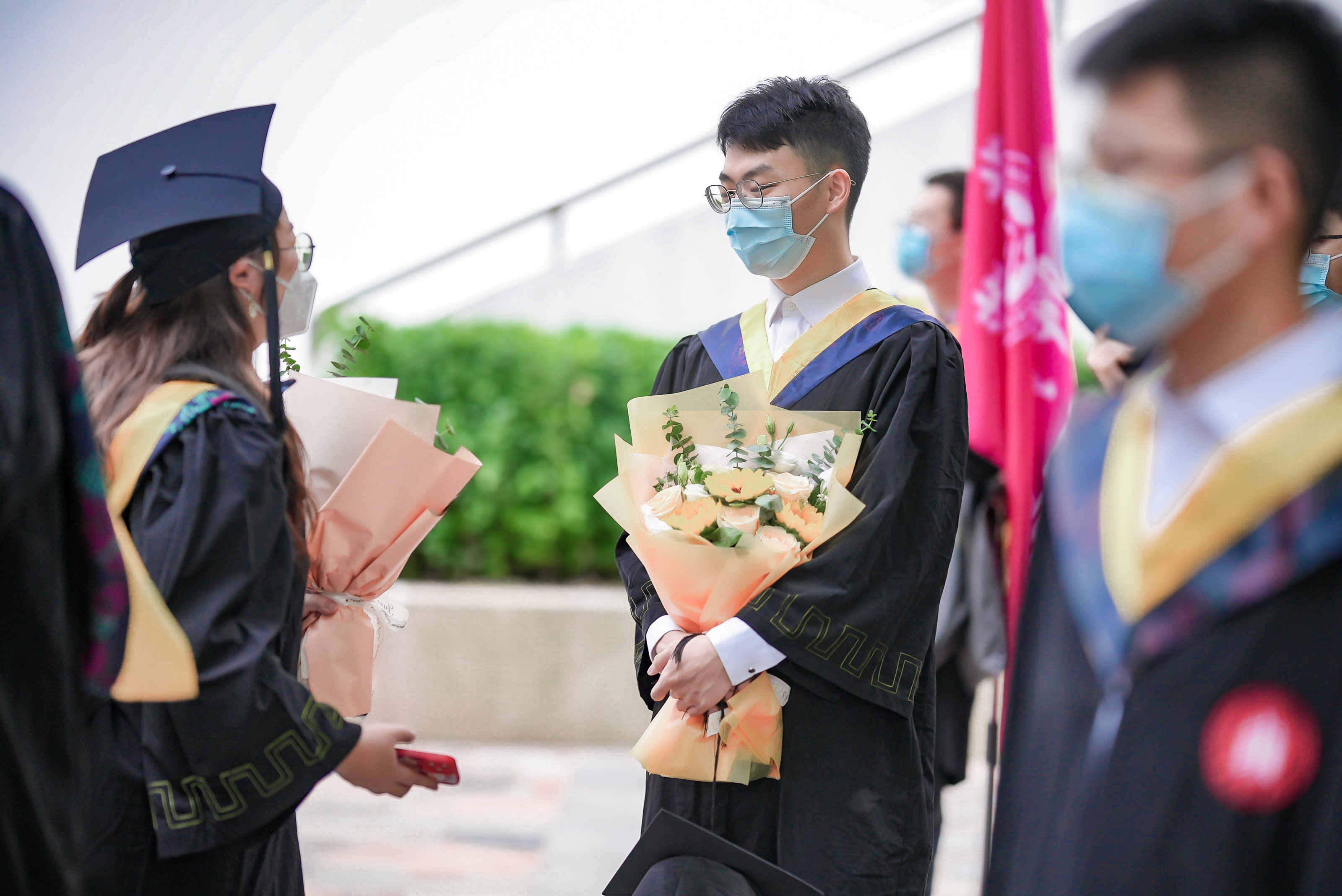 亚欧商学院工商管理专业的童冠铭来自台湾,他是中法创新实验班的学生,大三时去往里昂商学院读2+2的双学位,这次特地申请返校参加典礼,“感谢母校排除万难为毕业生们举办毕业典礼,为我们在师大校园的生活画下完美的句号。”同样返校参加毕业典礼的陶胡昀是历史学系的研究生,她最喜欢华师和华师人低调谦和的性格,“羁鸟恋旧林,对‘闵大荒’的人事物还是难舍一份依恋和怀念。”