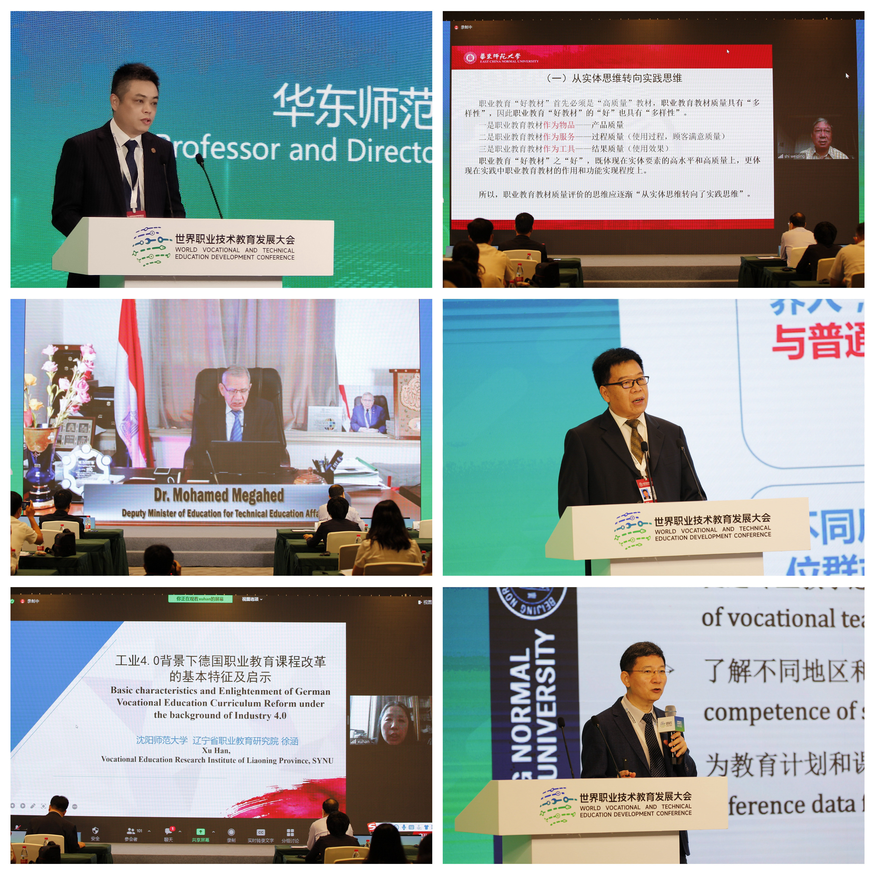 万象城awcsport官网终身教授、教育学部职业教育与成人教育研究所名誉所长石伟平重点对职业教育教材评价进行了理论反思,探讨了什么样的教材是“好教材”。埃及教育部副部长穆罕默德·穆贾希德教授,主管技术教育事务,分享了埃及抗击新冠病毒的对策以及面向未来技术与职业教育课程改革的经验。教育部行指委工作办公室常务副主任王国川主要讨论了职业教育国家专业教学标准的建构逻辑。北京师范大学赵志群教授长期专注于职业教育课程与教学论、职业教育质量保障、职业能力测评,他分享了关于职业能力评价的研究。沈阳师范大学教授徐涵分析了工业4.0背景下德国职业教育课程改革的基本特征, 如“围绕数字化数字能力调整职业特征及资格要求”,并从中得出“面向智能制造,明确新的技术技能人才培养目标”等启示。
