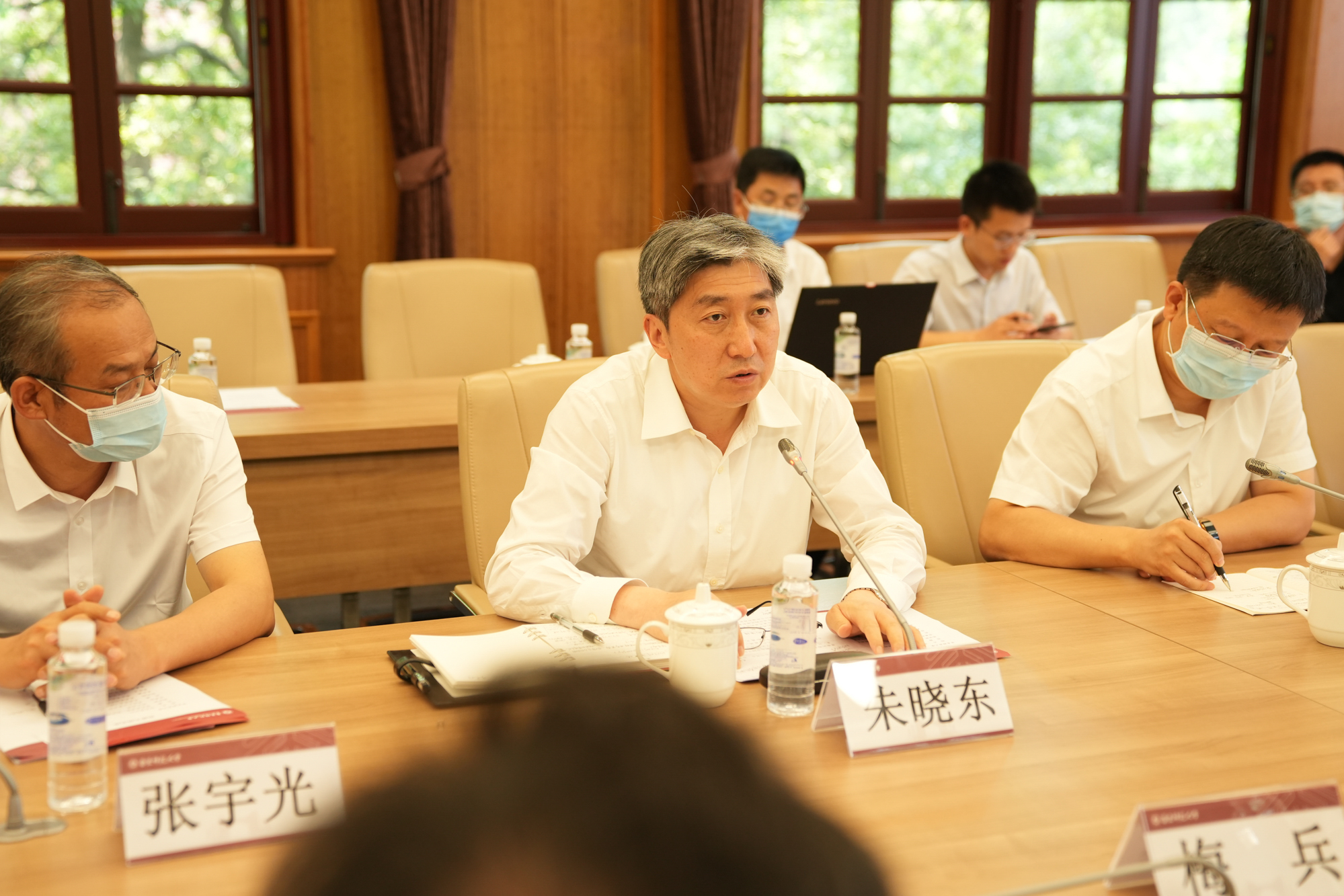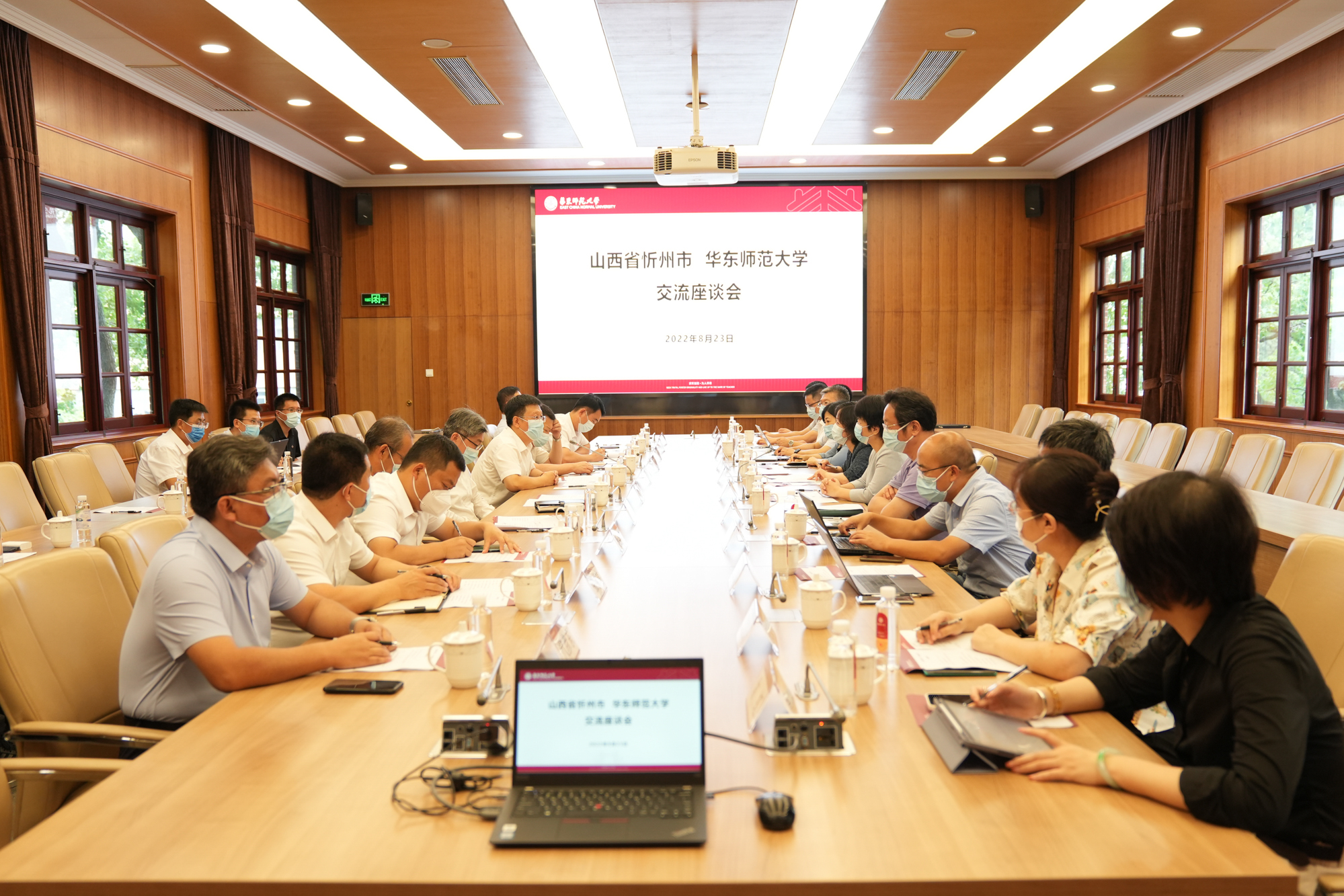 8月23日上午,山西省忻州市委书记朱晓东一行来校访问,并进行交流座谈。忻州市委书记朱晓东,市委常委、组织部部长张敏,市委常委、太忻经济一体化发展忻州区运营中心主任张宇光,市人大常委会副主任、市总工会主席(兼)、市商务(促进外来投资)局负责人罗志宏,市人民政府副市长耿鹏鹏;华东师大党委书记梅兵,党委常委、组织部部长程静,校长助理施国跃等出席座谈会。座谈会由程静主持。