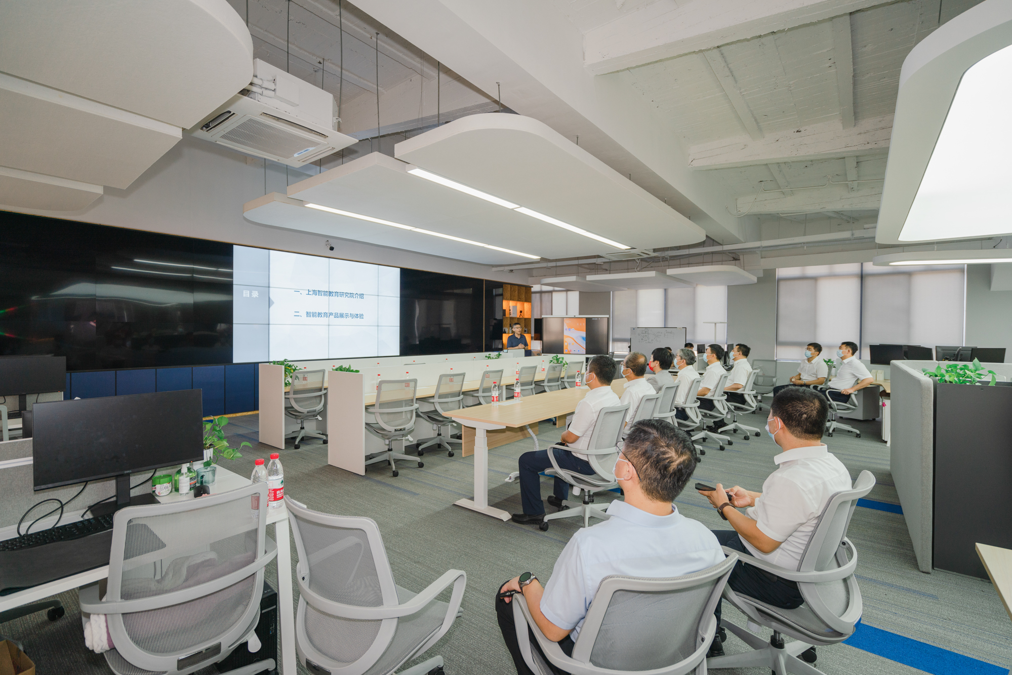 座谈会前,校党委副书记杨昌利陪同朱晓东一行参观了校史馆、智能教育研究院。