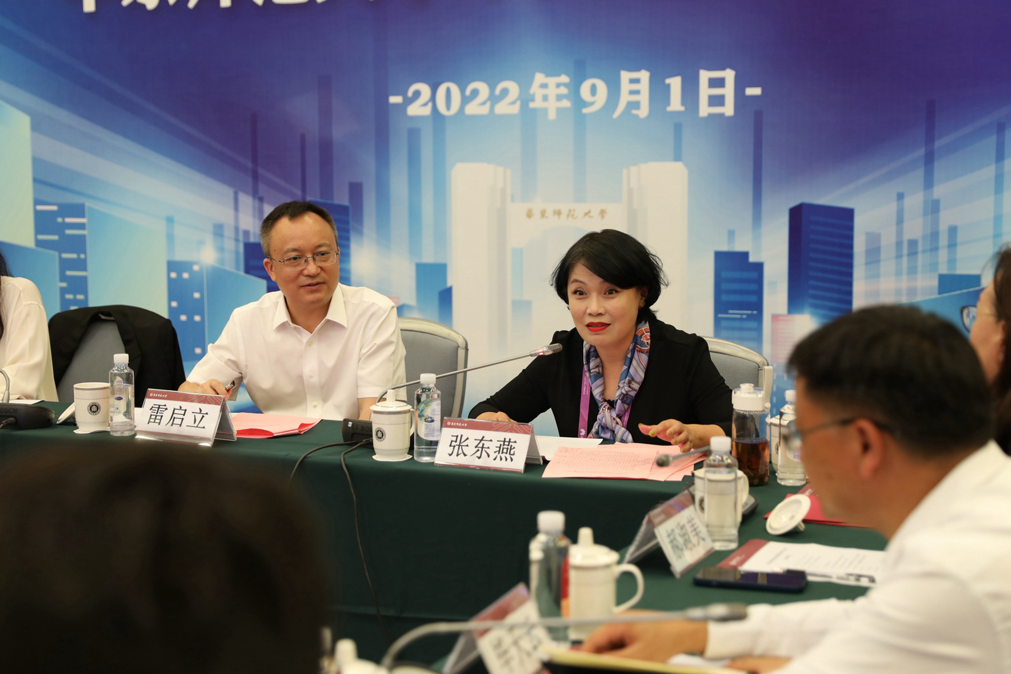 9月1日,教育部师范教育协同提质计划第二组团交流推进会在华东师大普陀校区举行。中国教师发展基金会副秘书长张东燕,马云公益基金会理事长于秀红,万象城awcsport官网党委书记梅兵、副校长雷启立,上海师范大学副校长李晔,云南师范大学副校长郝淑美,江西师范大学副校长项国雄,丽江师范高等专科学校校长毕天云,昭通学院党委副书记陈永华,赣南师范大学副校长吴磊,上饶师范学院副校长饶爱京,以及教育部、基金会、各高校相关职能部门负责人参加了会议。会议由华东师大副校长雷启立主持。