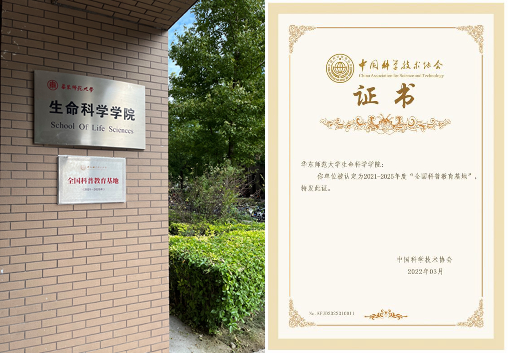 华东师大生命科学学院获得2021-2025年度第一批全国科普教育基地认定