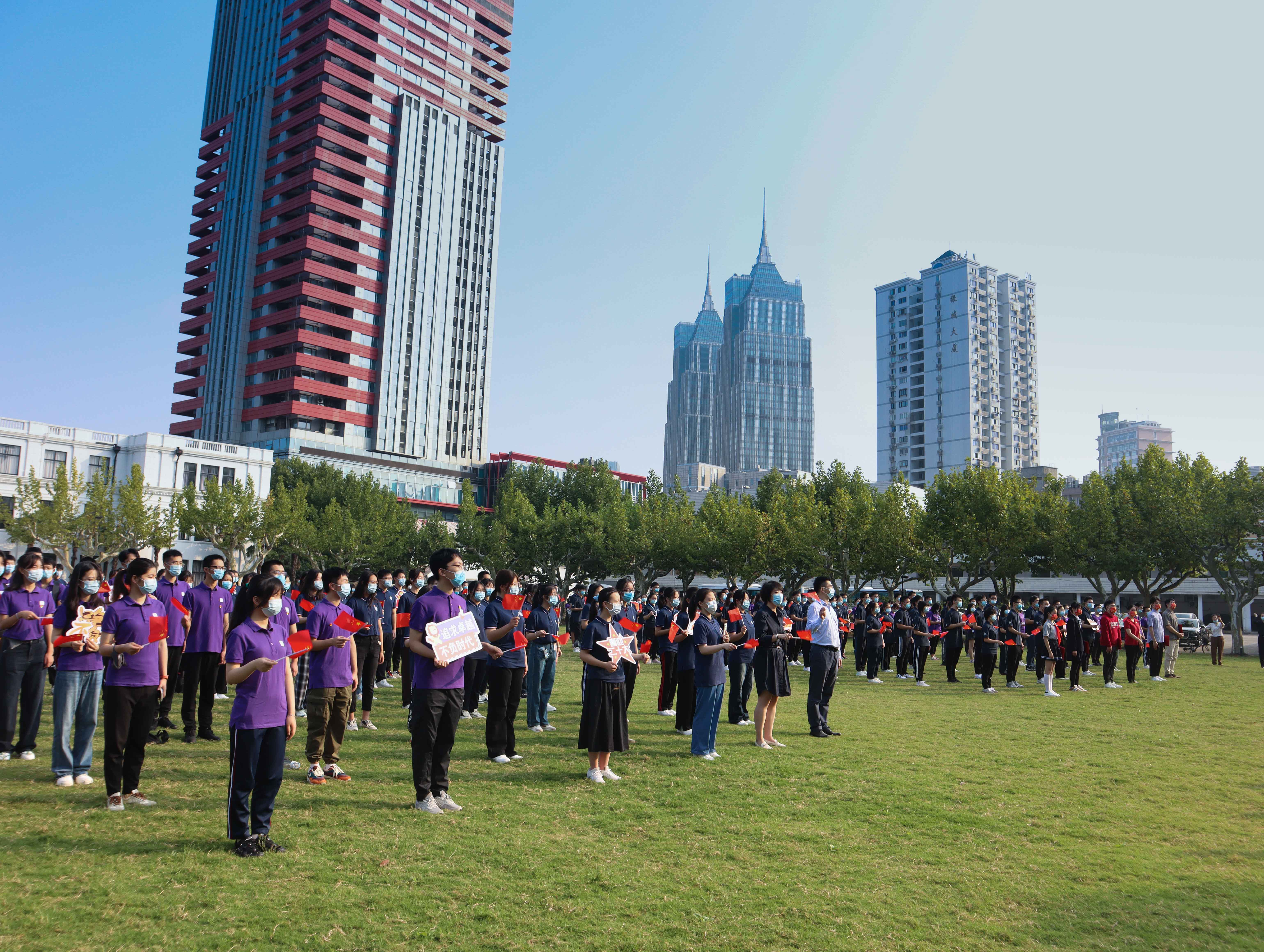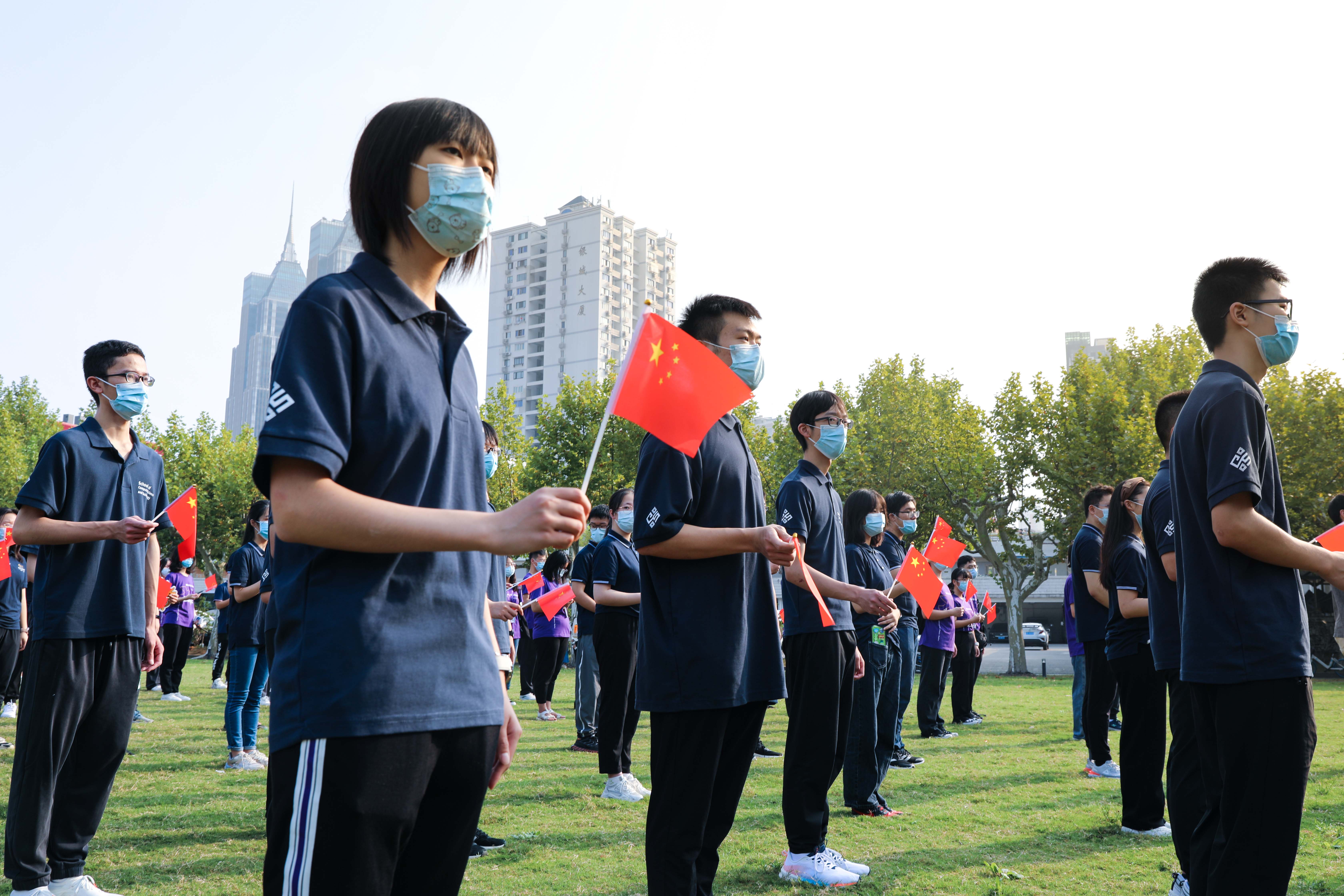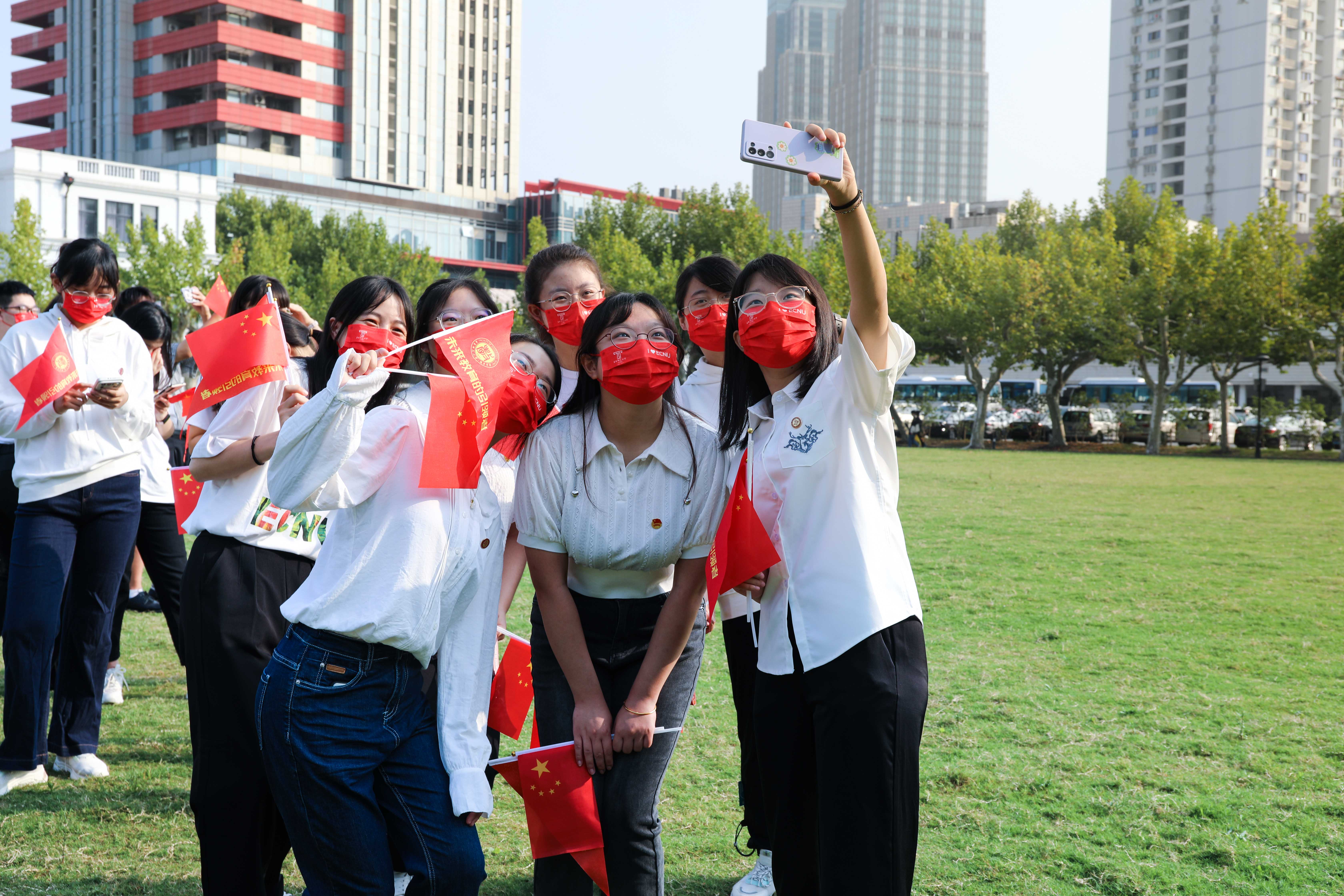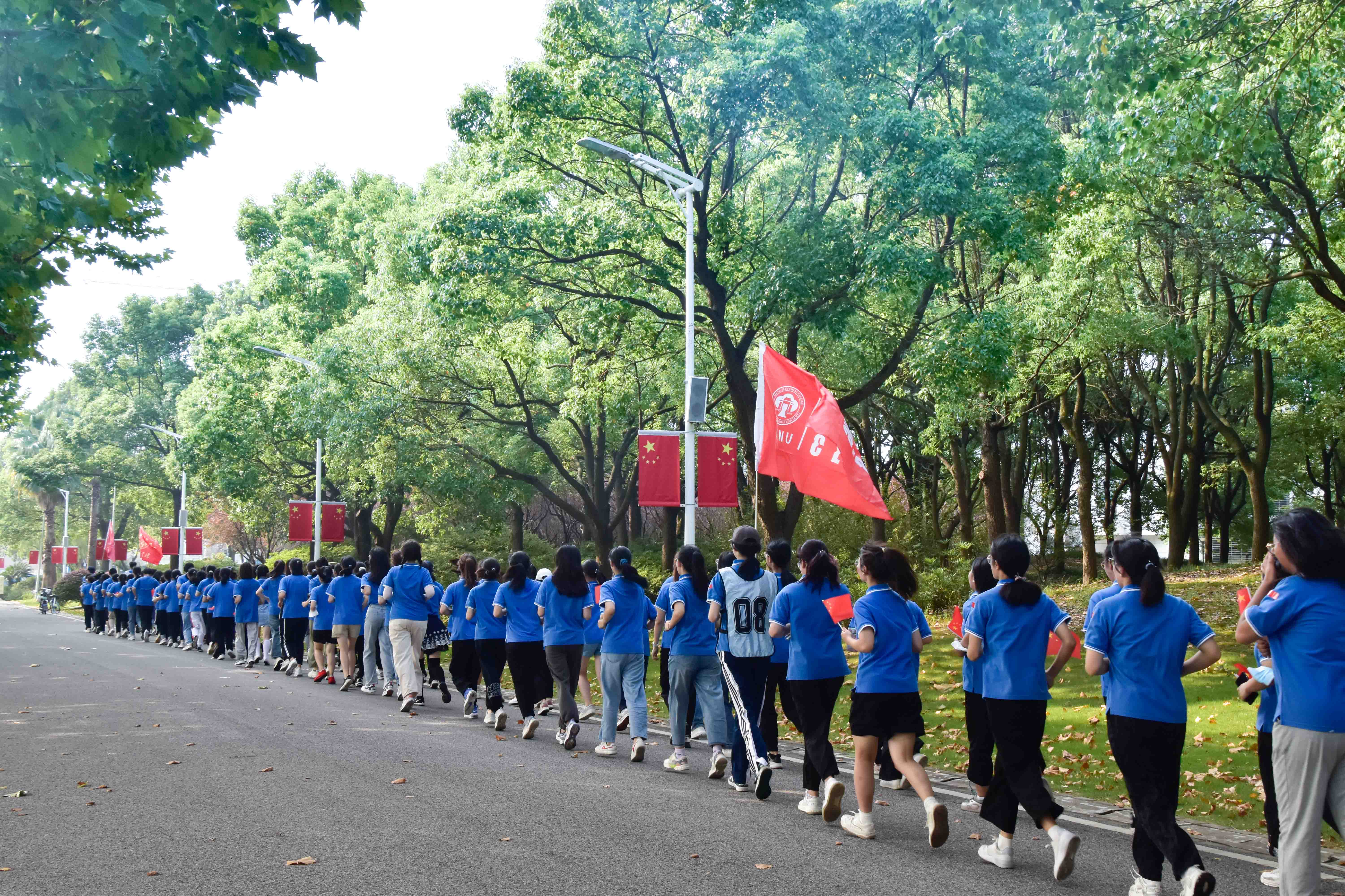 在师生齐唱《歌唱祖国》《我和我的祖国》的青春之声中,升旗仪式圆满结束。仪式后,闵行校区的师生们还举行了“一起奔向新征程·国庆逐梦健康跑”活动。
