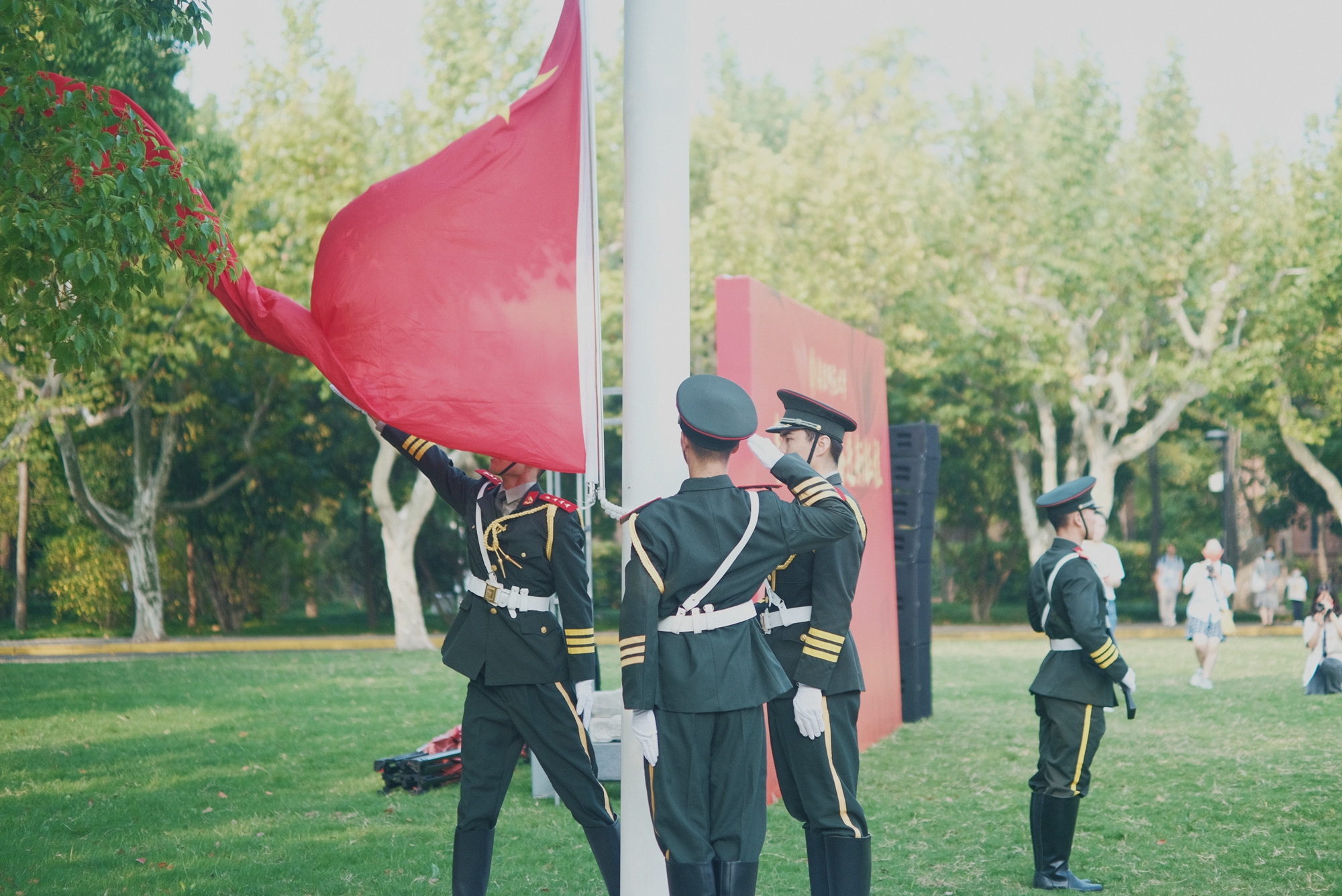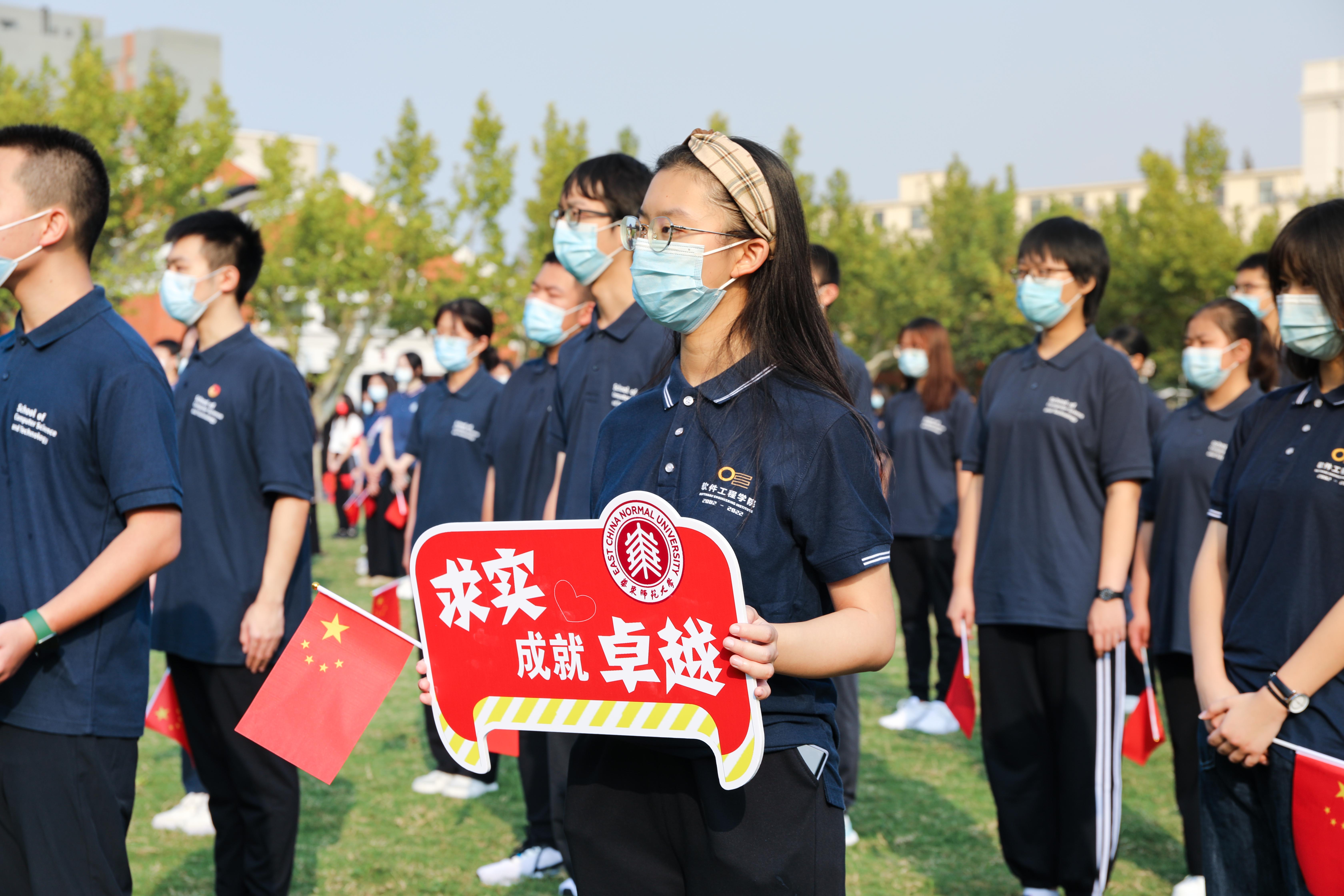 “看着冉冉升起的五星红旗,想到祖国过往几十载的艰苦奋斗和迅猛发展,心中热血澎湃,强烈的教书育人使命感和责任感油然而生。”华东师大孟宪承书院2021级化学专业的兰蕊同学,在参加升旗仪式后激动地说。