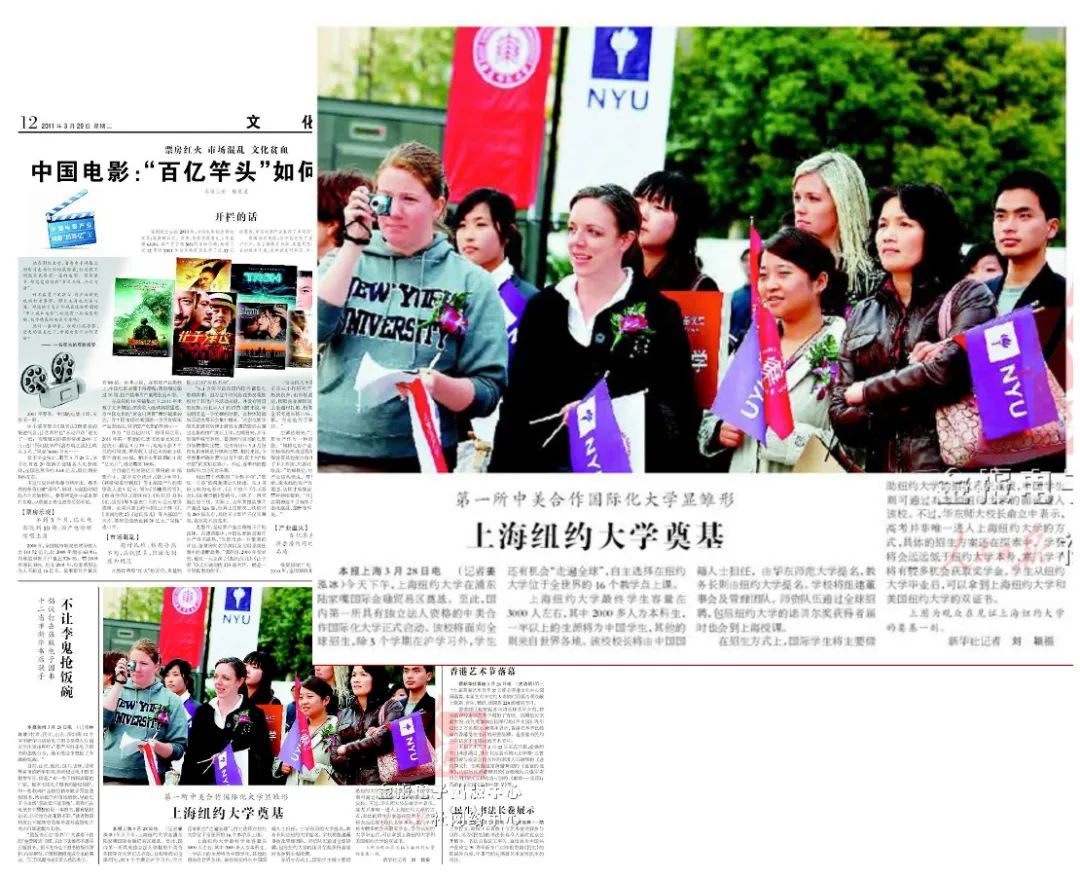 2011年3月28日,华东师大与纽约大学签署合作协议,上海纽约大学奠基。