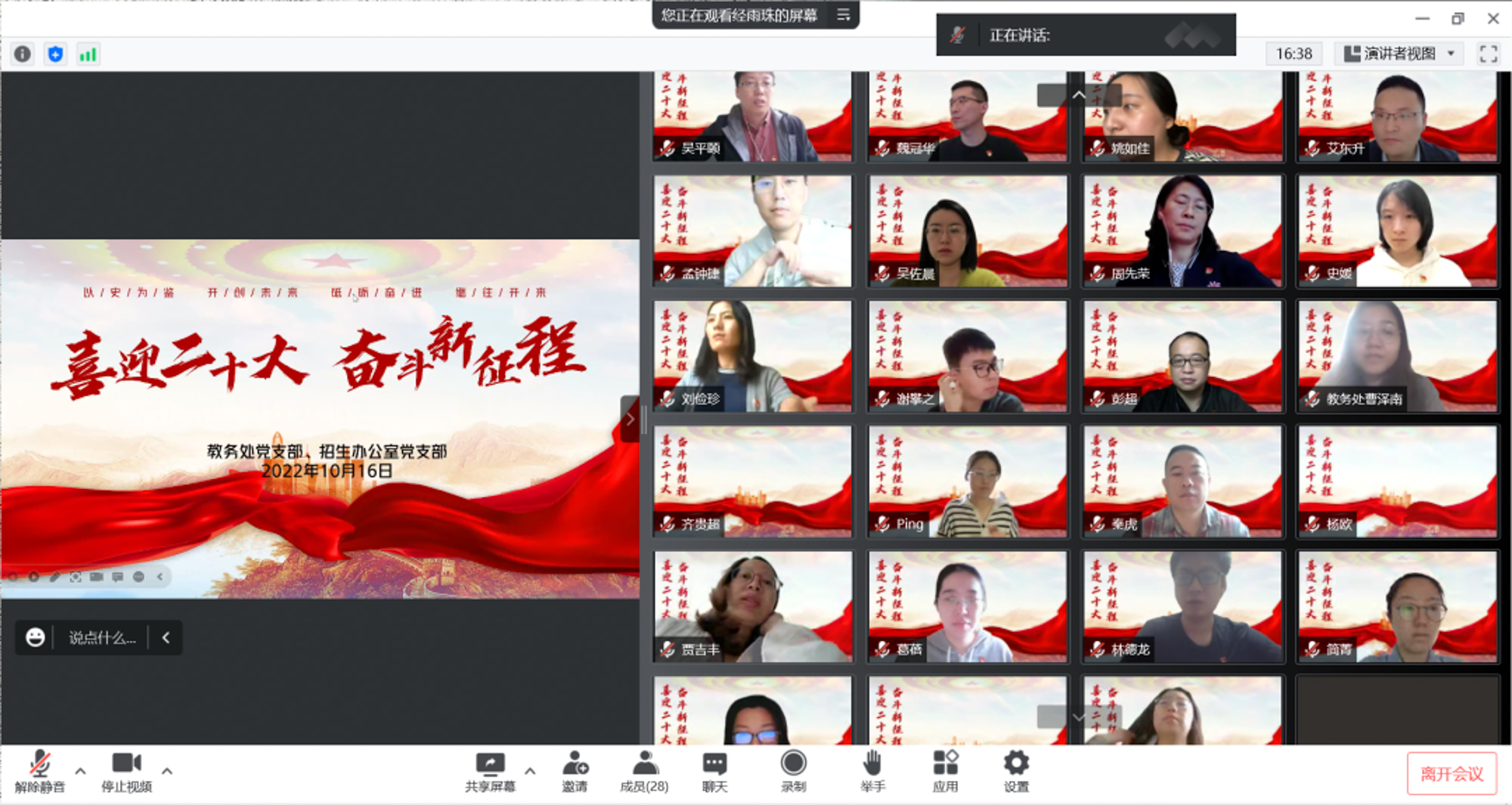 在郑州一中实习2019级物理学(师范)专业李宜阳同学,组织高二学生集体观看党的二十大开幕式