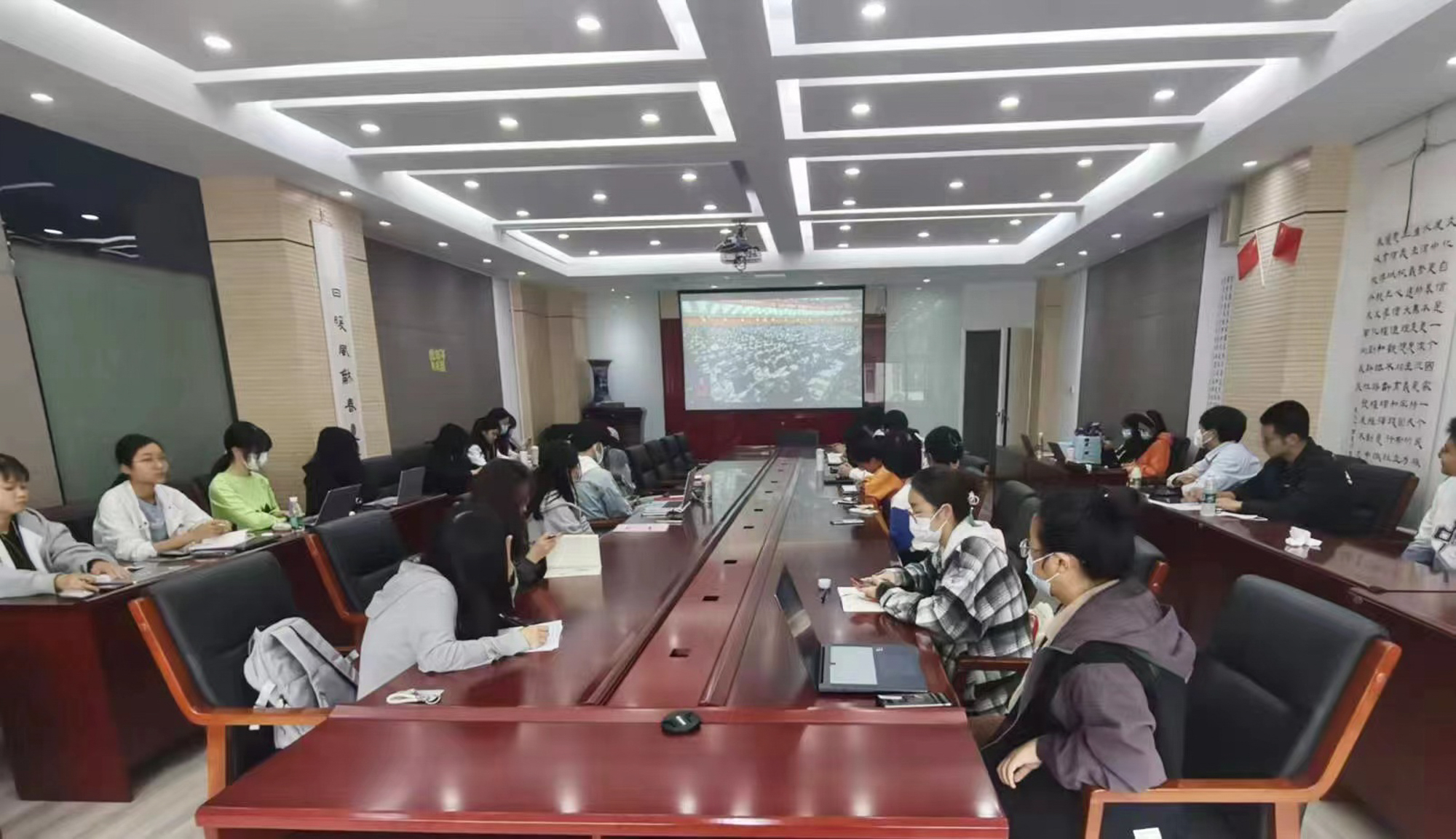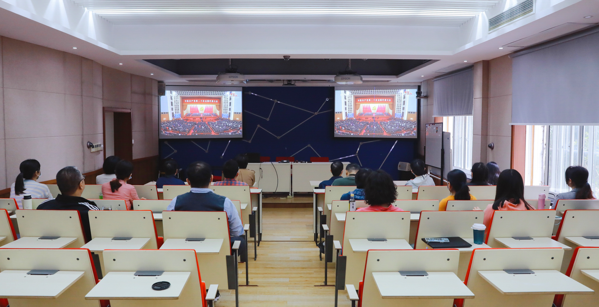 万象城awcsport官网党委中心组成员共同收看二十大开幕会直播,并在会后第一时间举行学习扩大会,交流思考体会,深入研讨如何结合教育系统特点和学校工作实际,将学习贯彻党的二十大精神切实落到推动学校各项事业发展的实际中。
