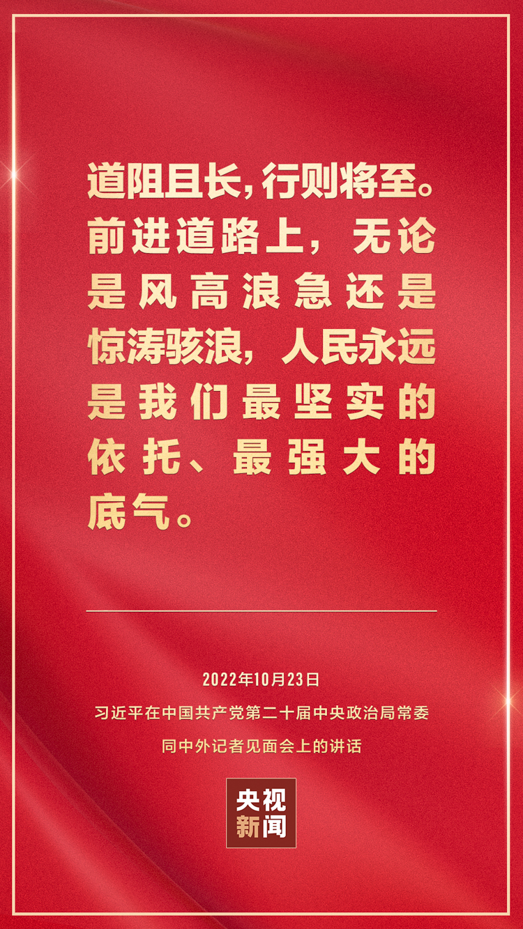 道阻且长,行则将至。前进道路上,无论是风高浪急还是惊涛骇浪,人民永远是我们最坚实的依托、最强大的底气。我们要始终与人民风雨同舟、与人民心心相印,想人民之所想,行人民之所嘱,不断把人民对美好生活的向往变为现实。