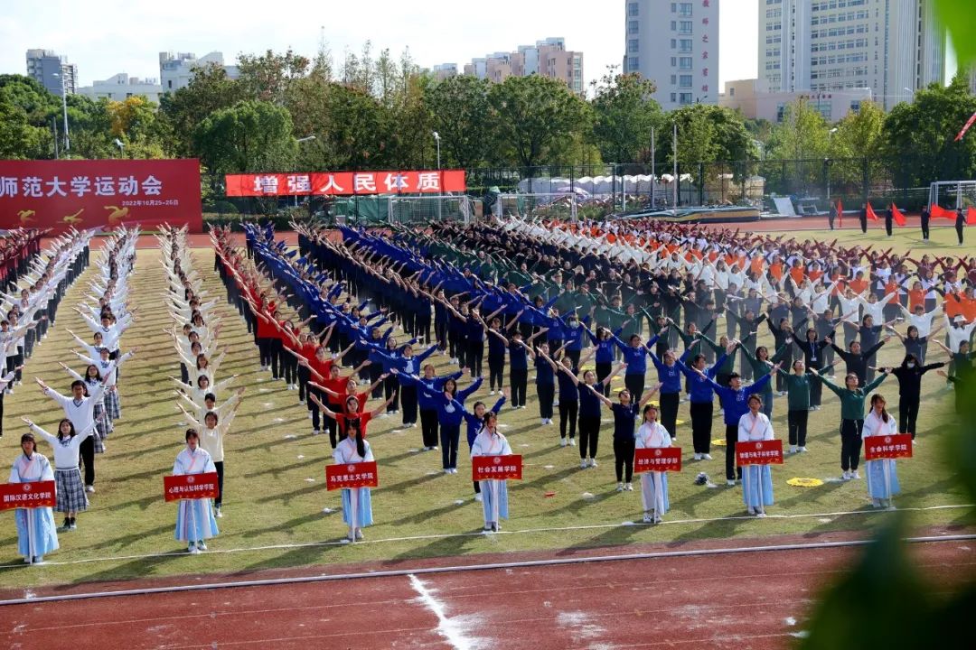 晴空万里,深秋的华东师大活力四射,2022年华东师大运动会开幕式今天在闵行校区东区田径场举行。校党委书记梅兵,校党委副书记杨昌利、曹友谊,副校长周傲英、戴立益、雷启立、顾红亮,校长助理施国跃及部分学部院系负责人在主席台就坐。开幕式由体育与健康学院院长季浏主持。