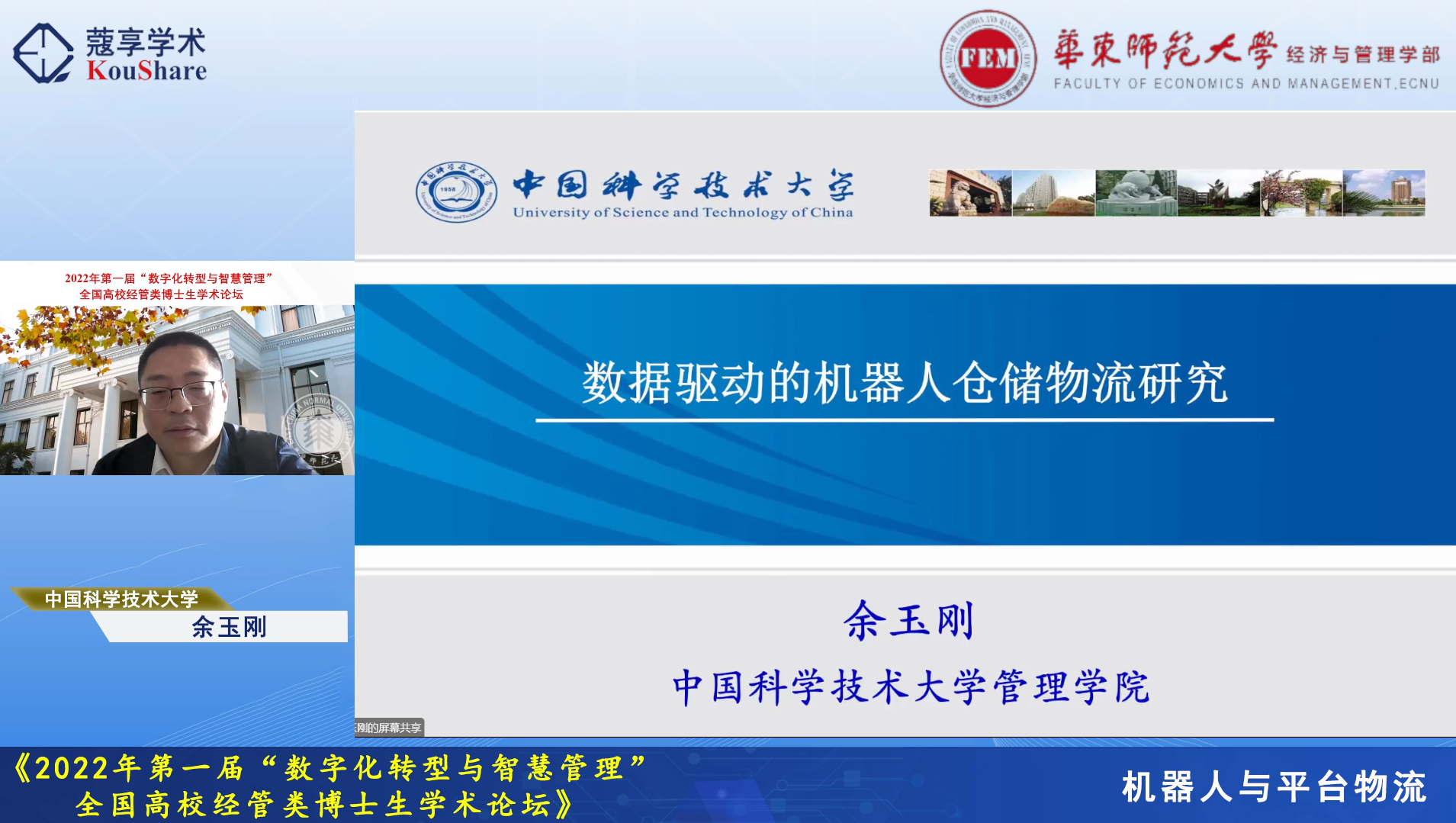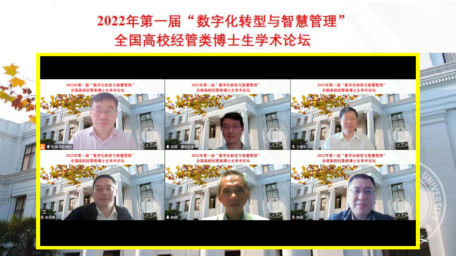 10月22-23日,由华东师大研究生院主办,华东师大经济与管理学部、工商管理学院、统计交叉科学研究院和《系统管理学报》编辑部联合承办的2022年首届“数字化转型与智慧管理”全国高校经管类博士生学术论坛在线举行。论坛由经管学部统计交叉科学研究院副院长、中国运筹学会医疗运作管理分会副理事长杜刚教授发起和策划组织,吸引了来自全国多所院校的累计1.2万余名师生在线观看和研讨。