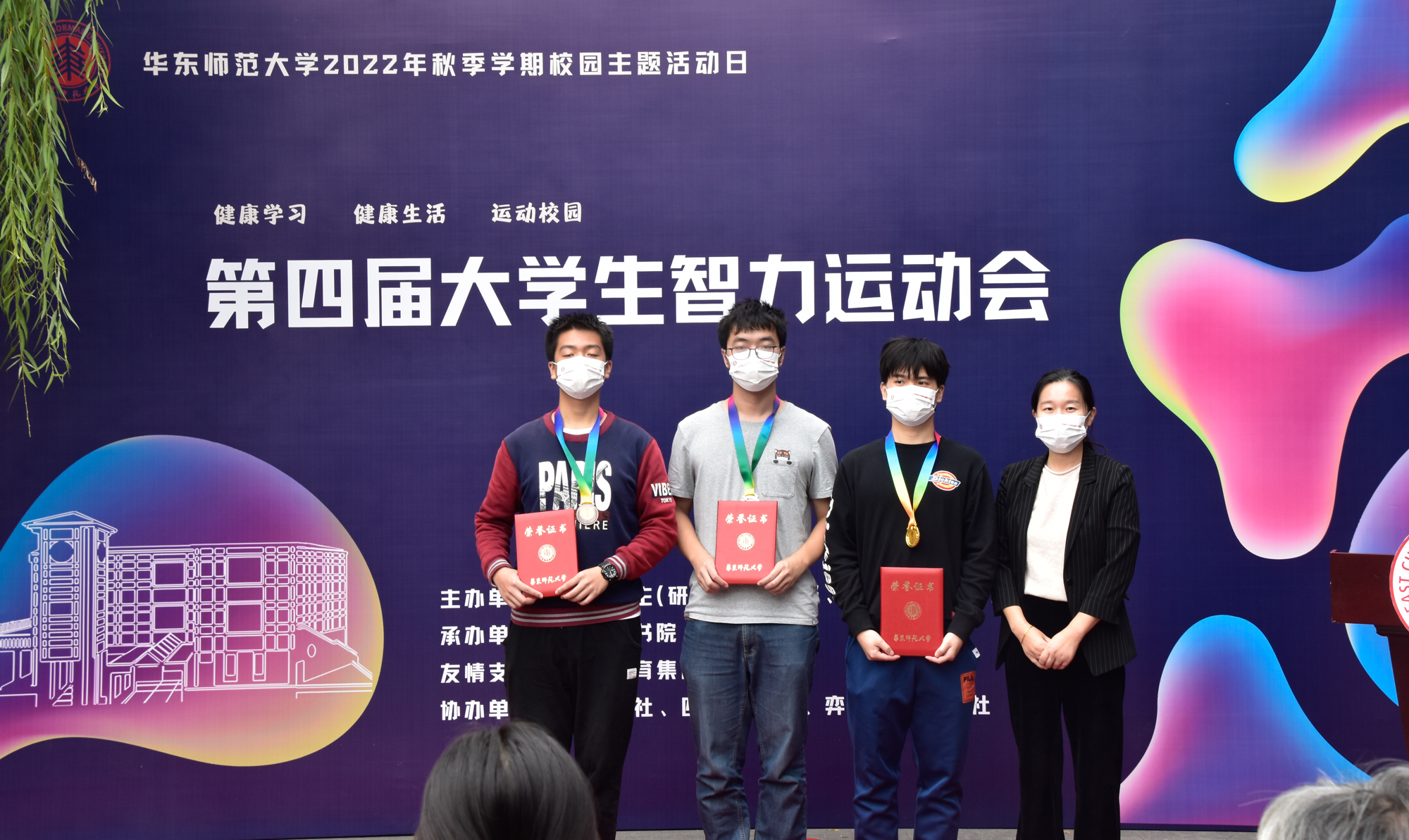 10月26日,为实践健康第一的教育理念,促进体育与教育的融合,进一步引导广大青年学生树立健康学习、健康生活的意识,倡导学生积极参加体育运动,强健体魄,养成健康的生活方式,促进学生身心健康和德智体美劳全面发展,华东师大2022年“健康学习、健康生活、运动校园”校园主题活动日拉开帷幕。本次主题活动日形式多样、精彩纷呈,校级活动包括第六届“书院杯”篮球友谊赛、第五届少数民族学生特色运动会、第五届ECNU大学生游泳比赛、第四届大学生智力运动会等。副校长周傲英出席活动并为获奖学生颁奖,近千名学生参与各类项目角逐、展现青春风采。