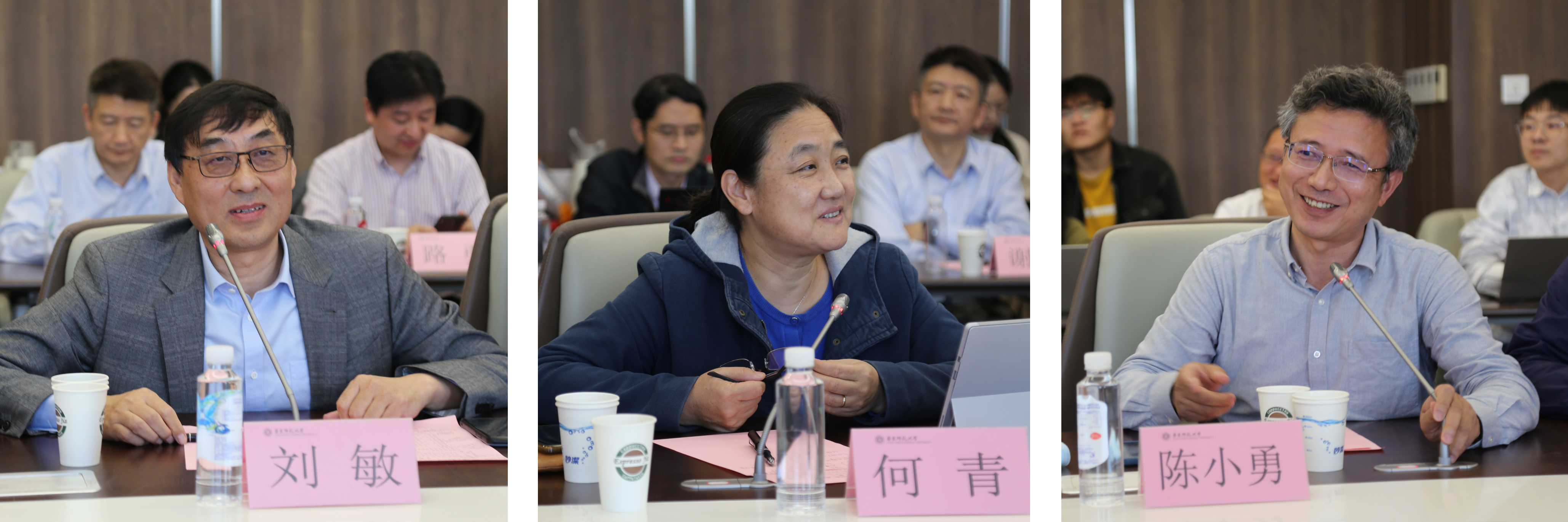 地理科学学院院长刘敏、河口海岸科学研究院院长何青、生态与环境科学学院院长陈小勇介绍学院研究工作
