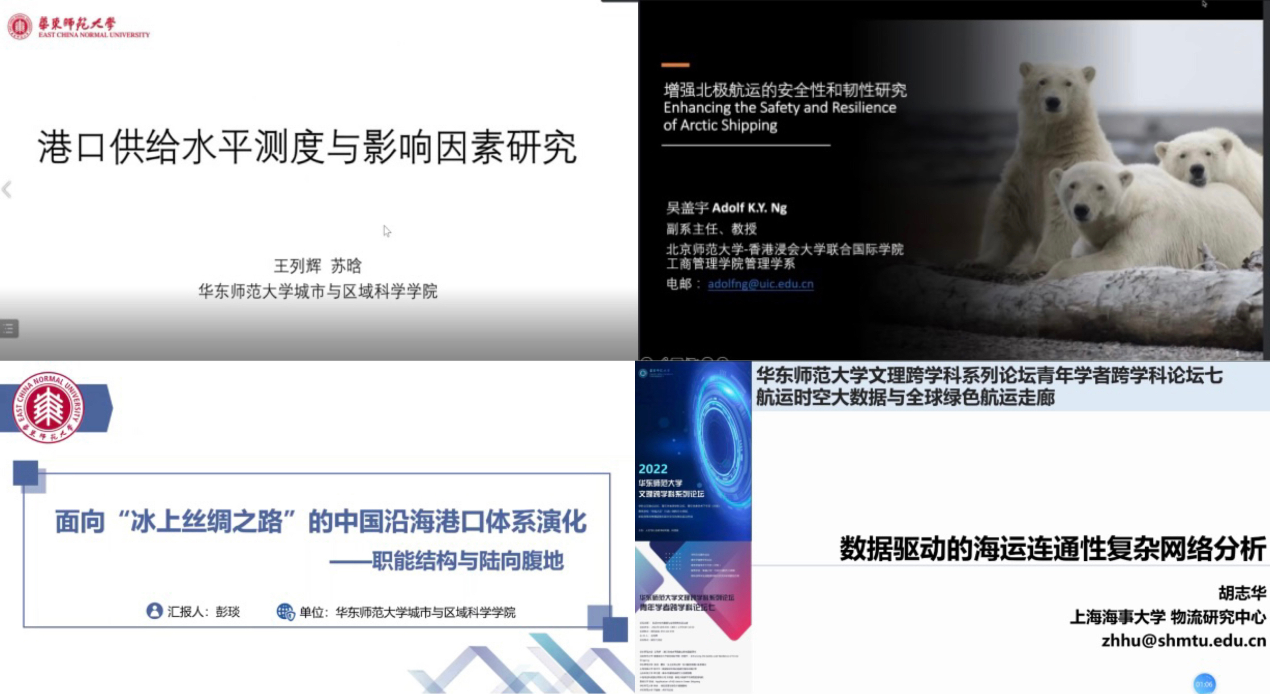 华东师大城市与区域科学学院彭琰博士后以《面向“冰上丝绸之路”的中国沿海港口体系演化——职能结构与陆向腹地》为题进行了汇报。彭琰首先以“冰上丝绸之路”、“港口体系”等概念为引入进行职能结构演化分析,继而探讨了多情境模式下港口陆向腹地的选择概率,并指出受“冰上丝绸之路”影响,中国北部、中部及南部港口的陆向腹地呈现不同特征,其中北部港口的陆向腹地受“冰上丝绸之路”的影响最为突出。