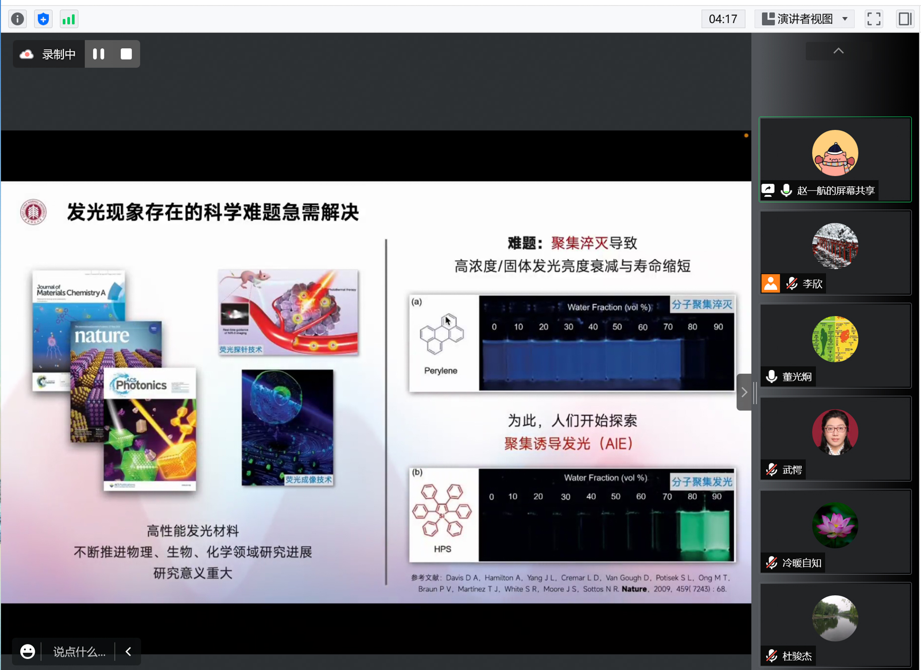 赵一航提出开展聚集诱导发光研究,经过多次和导师讨论,独辟蹊径把聚集诱导发光和量子光学的前沿超辐射结合起来,并搜集实验证据佐证自己的猜想。
