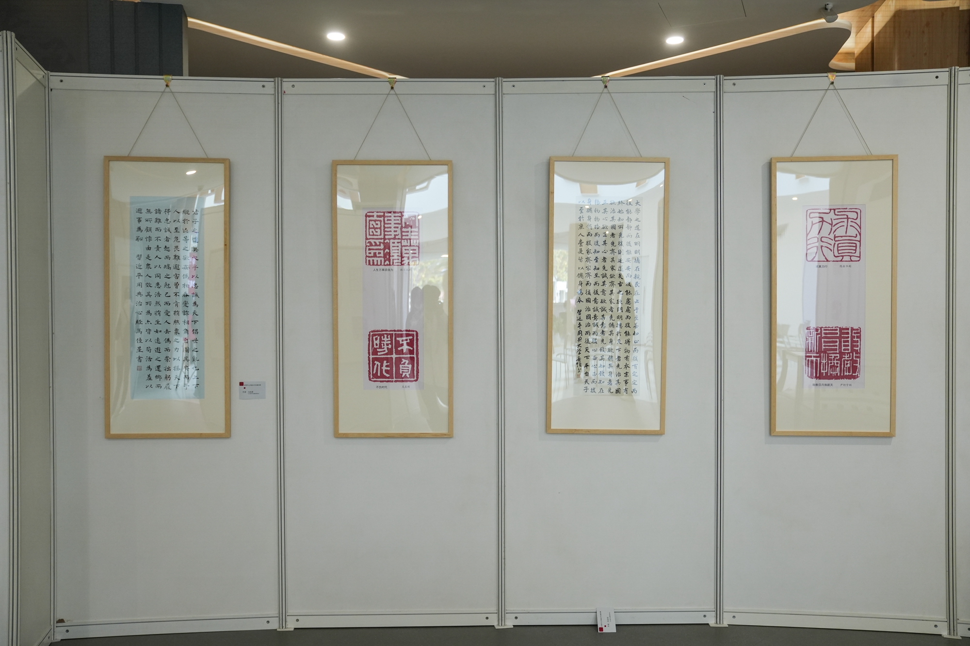 此次展出的26件书法作品和42方篆刻作品,记录了习近平总书记的讲话用典, 既是对中华优秀传统文化的致敬与传承,也是学校师生学习党的二十大精神体会感悟的真切呈现。