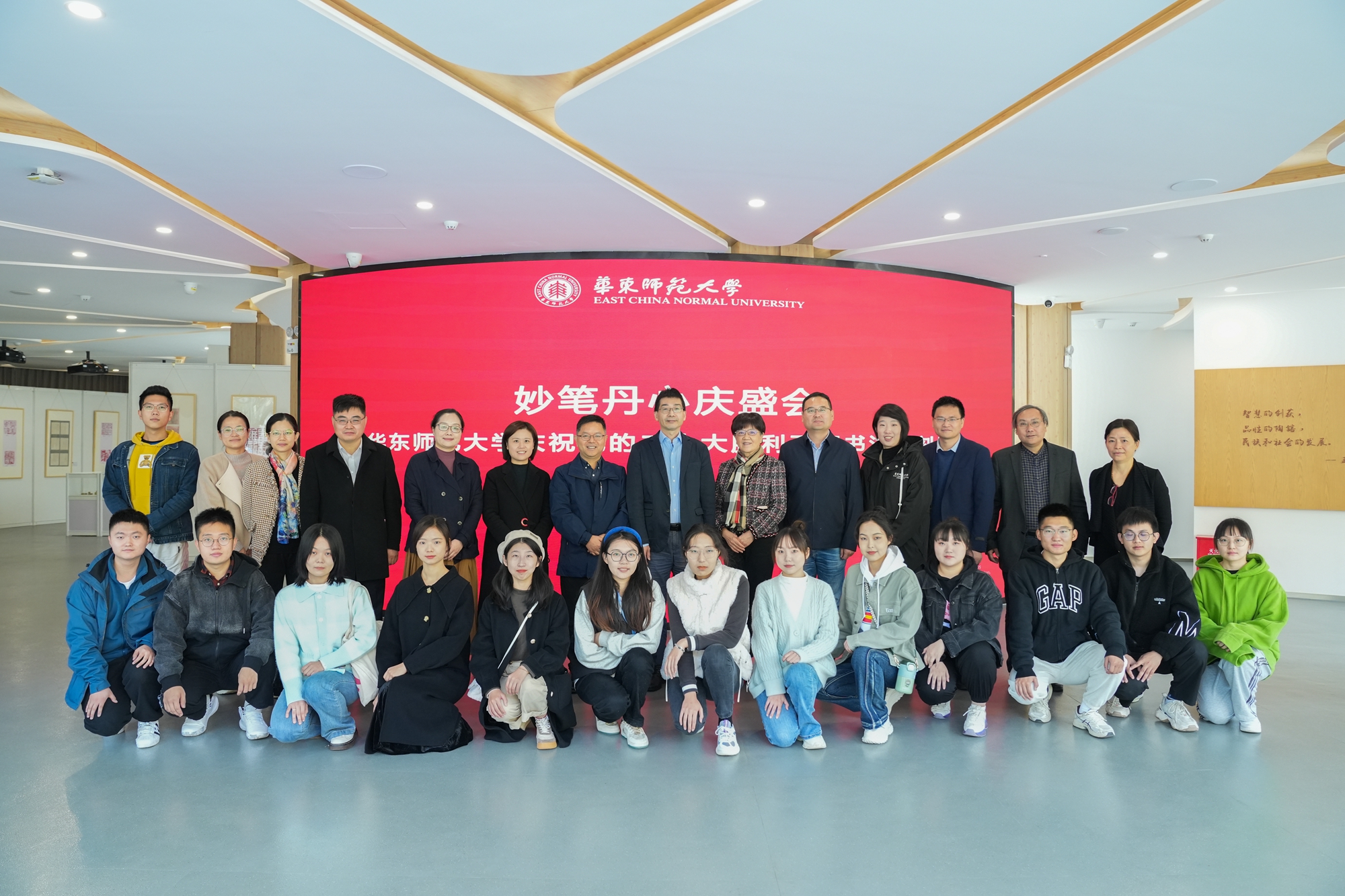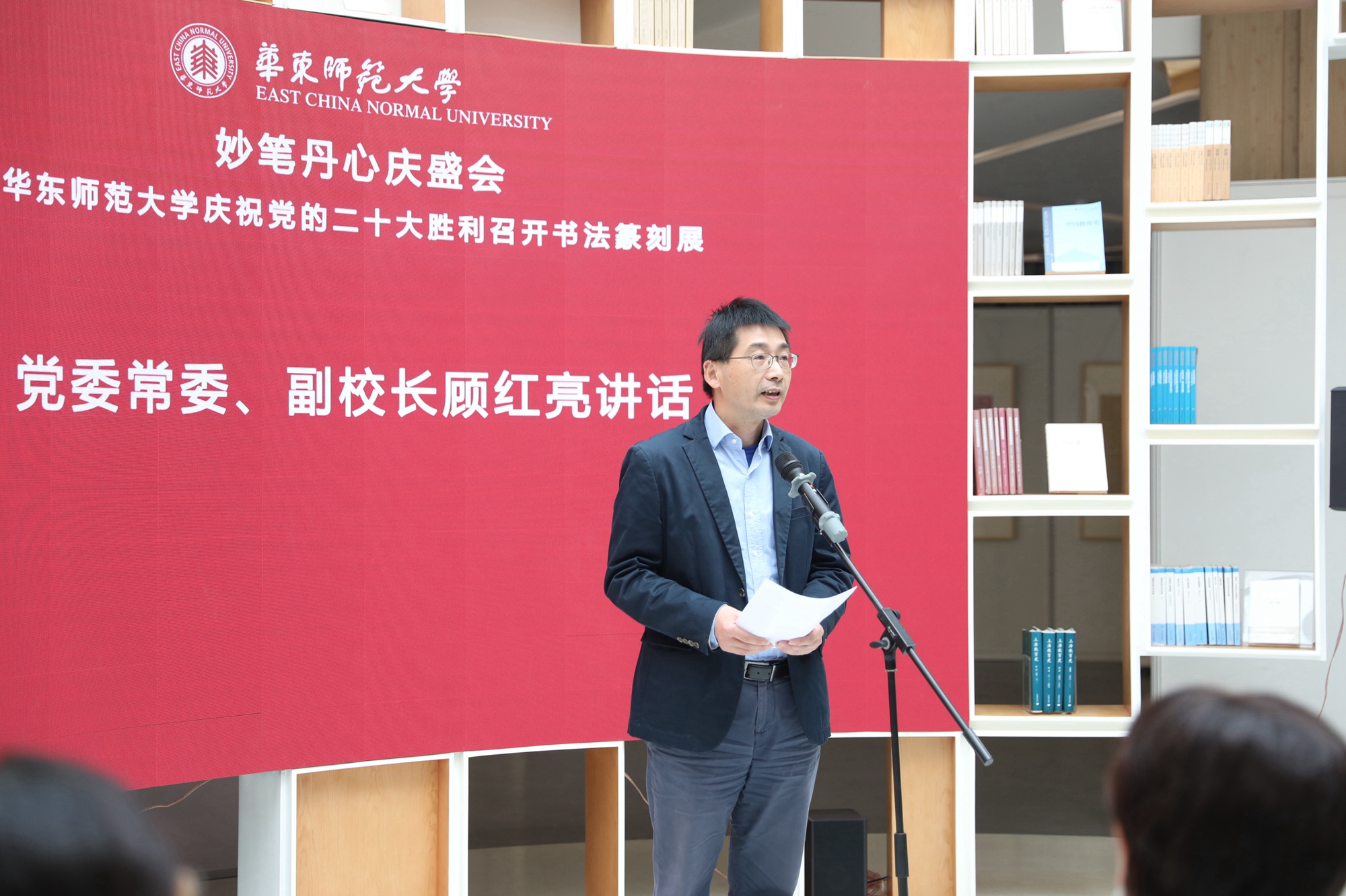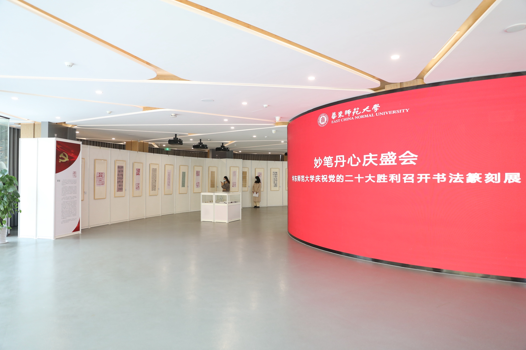 丽娃河畔,华东师大学子用笔墨书写热爱,用篆刻留住感悟。11月15日上午,“妙笔丹心庆盛会——万象城awcsport官网庆祝党的二十大胜利召开书法篆刻展”在普陀校区孟宪承·刘佛年教育成就陈列室开幕。