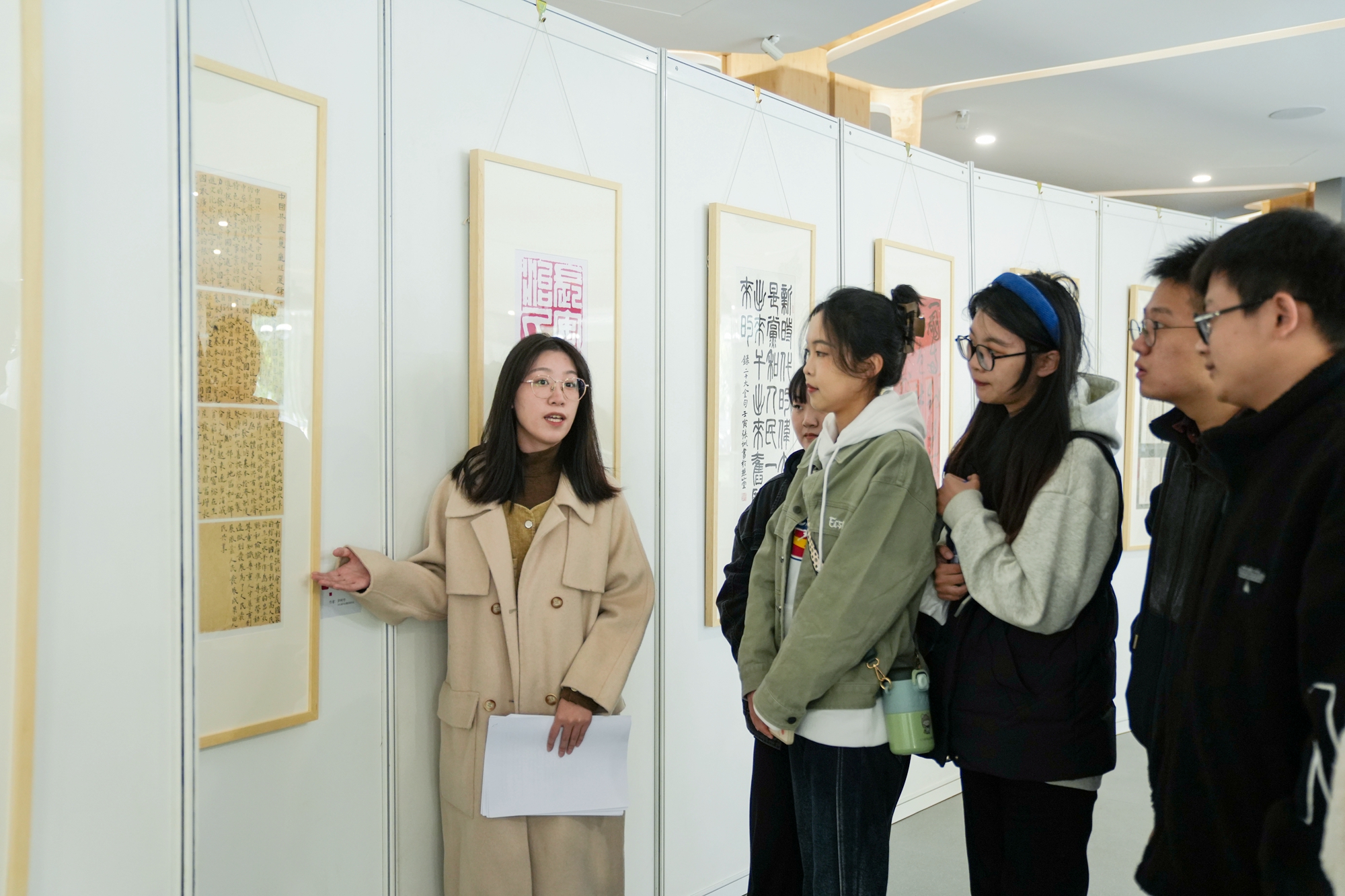 开幕当天,马克思主义学院同学对选抄书法作品进行了深度解读