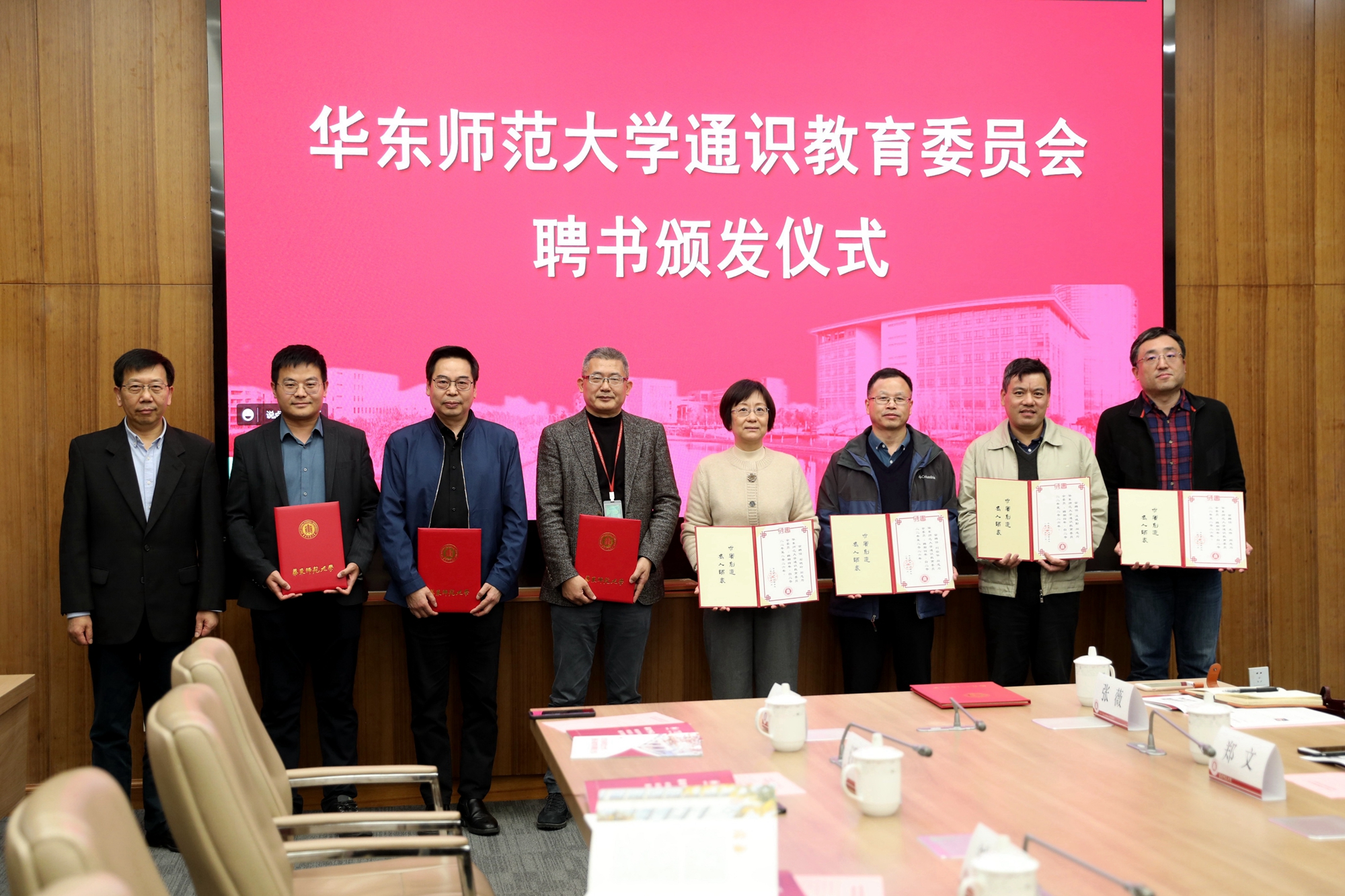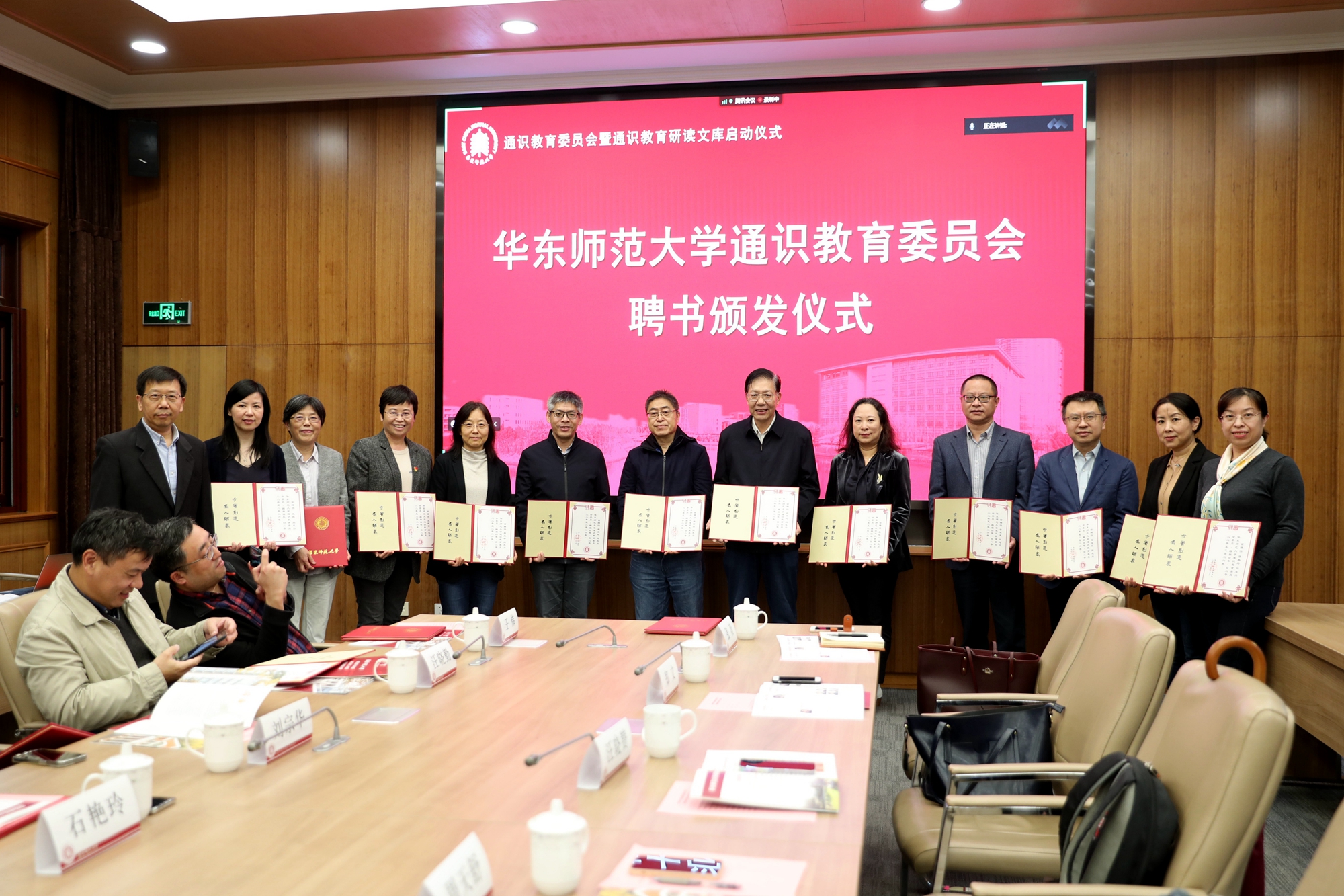 华东师大校长钱旭红为现场参会的副主任委员及委员颁发聘书