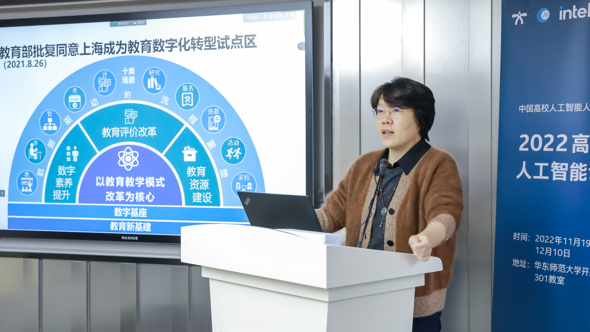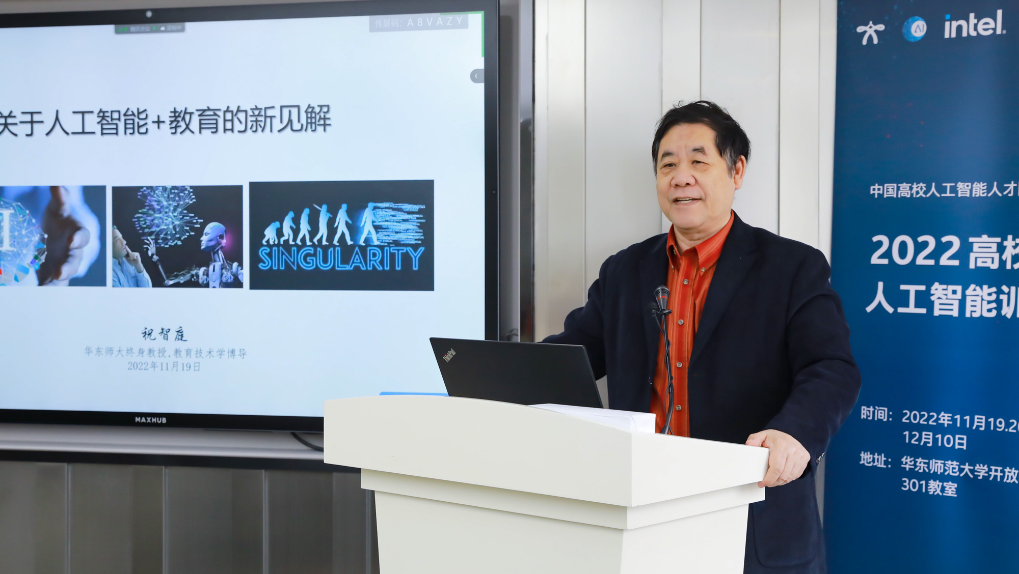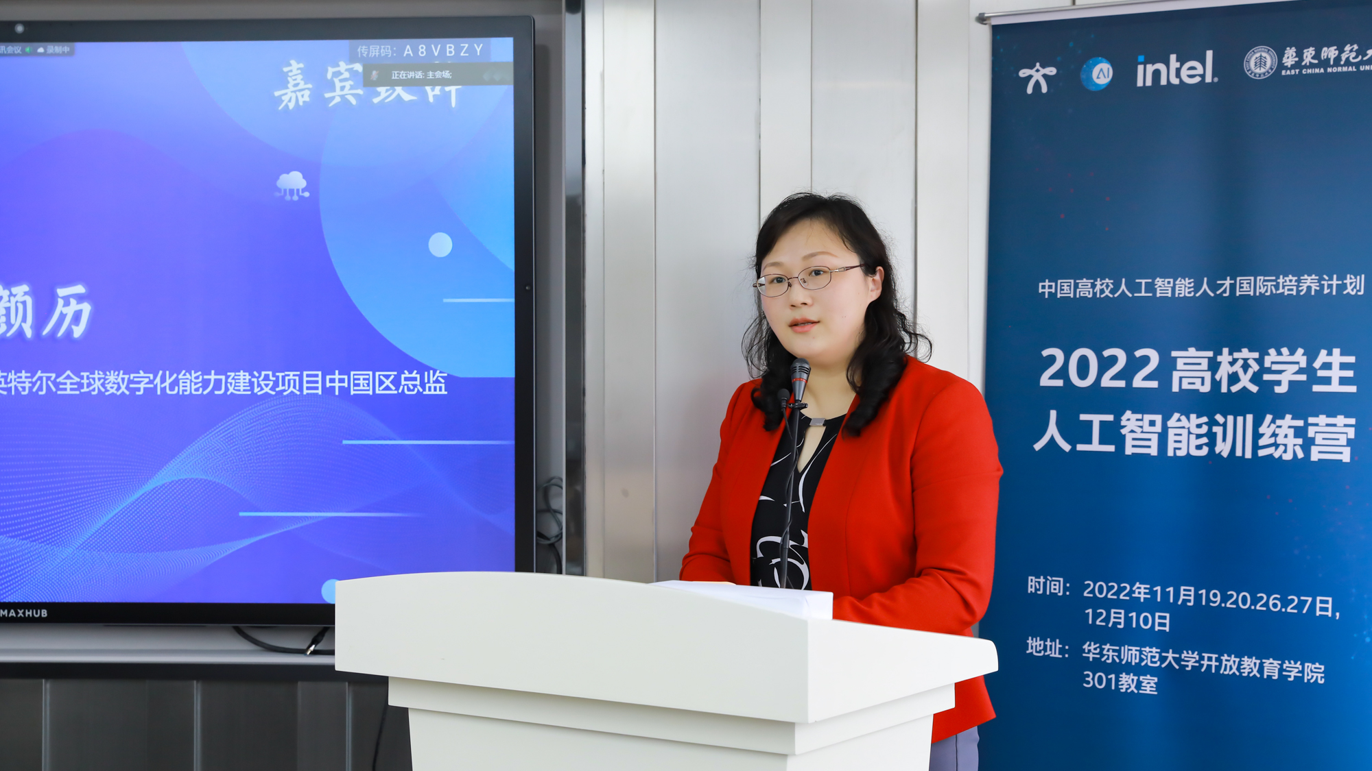 11月19日,由华东师大承办的2022高校学生人工智能训练营通过线上线下相结合的方式正式开营。教育部中外人文交流中心副主任夏娟,华东师大副校长戴立益、教务处处长孟钟捷、终身教授祝智庭、教师发展学院院长闫寒冰,英特尔(中国)院士戴金权、全球数字化能力建设项目中国区总监颜历以及来自万象城awcsport官网、赣南师范大学、江西师范大学、云南师范大学、丽江师范高等专科学校、上饶师范学院、昭通学院的74位学生参加了开营仪式。