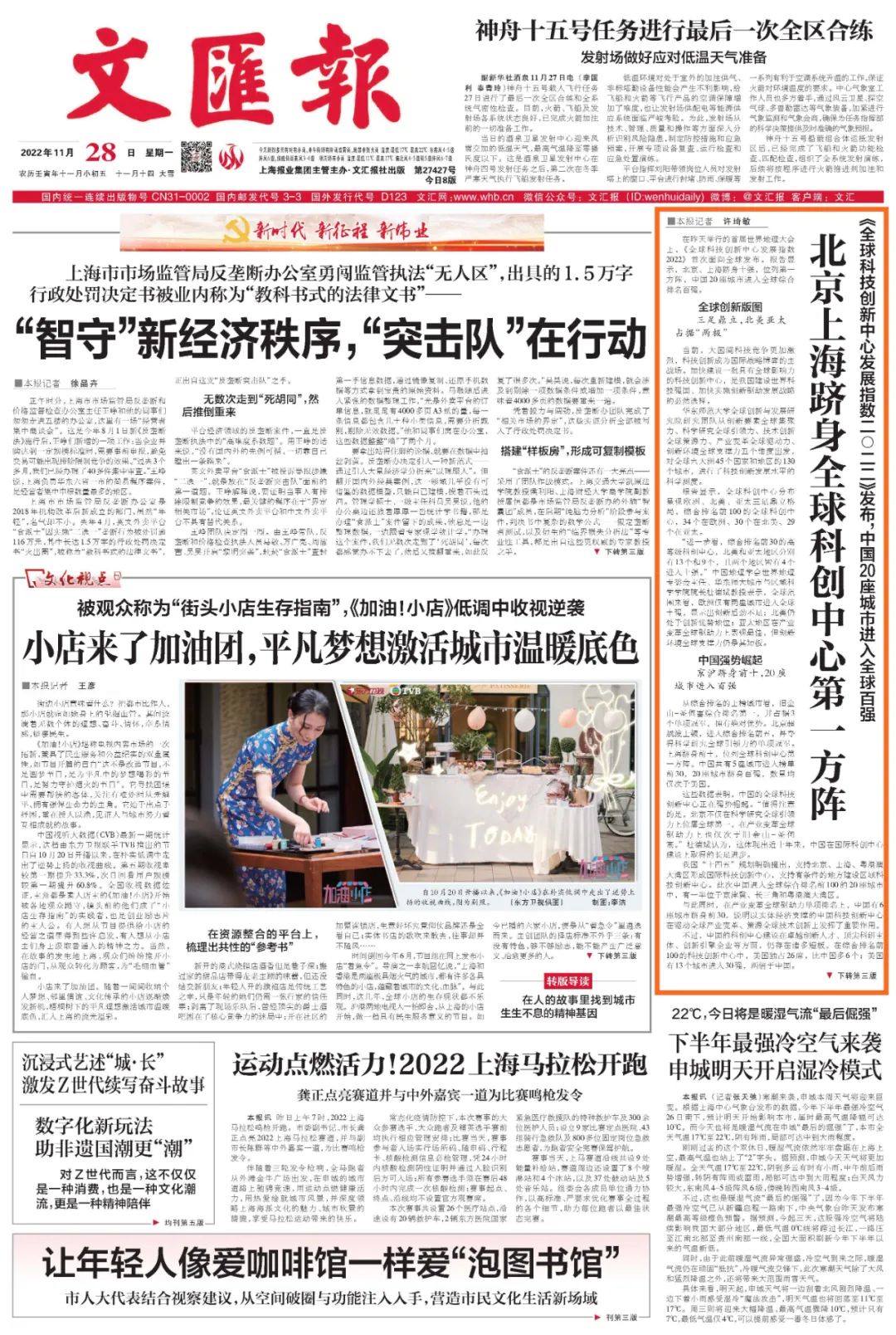 《文汇报》11月28日头版