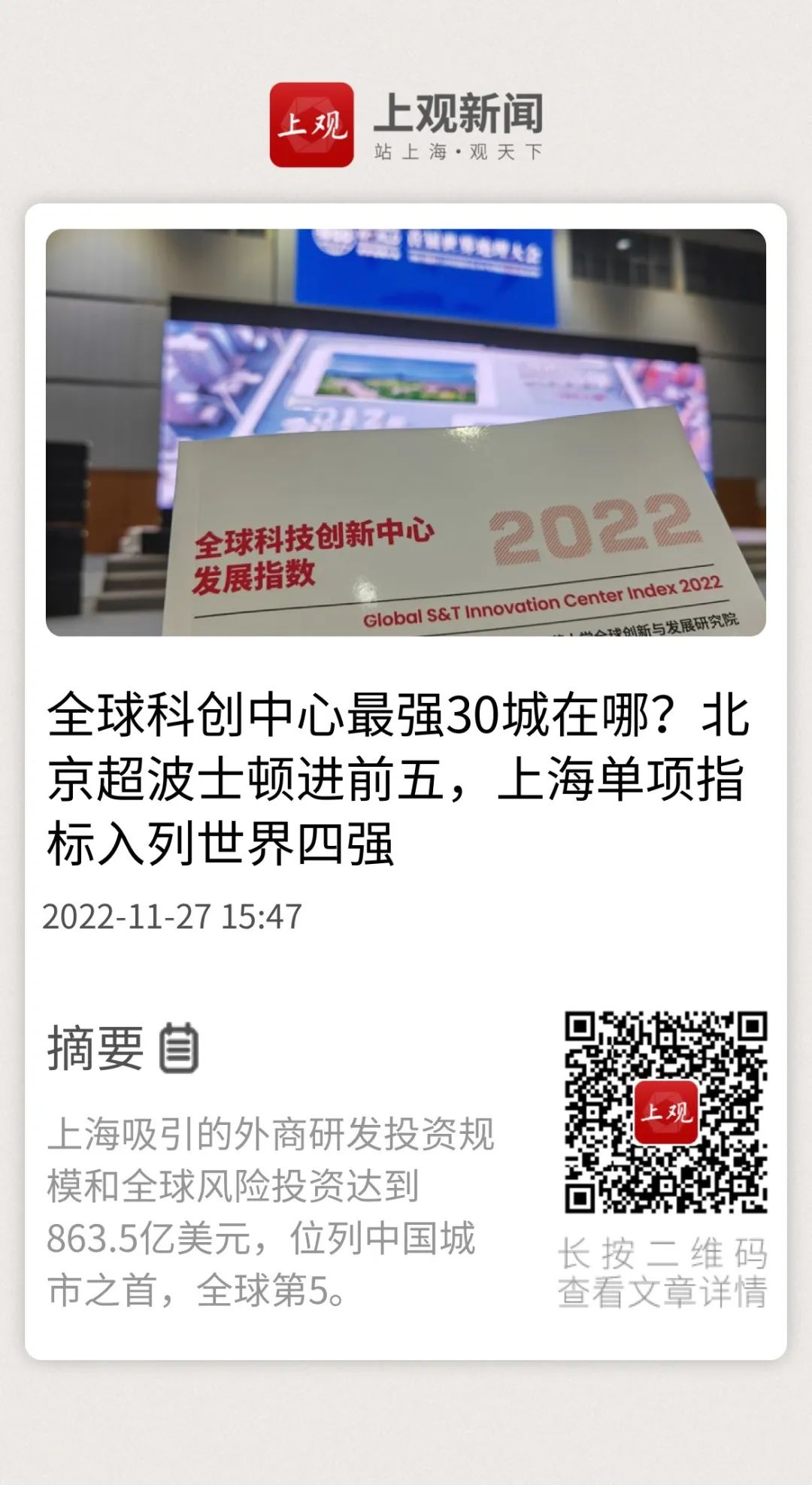 《全球科技创新中心发展指数2022》发布