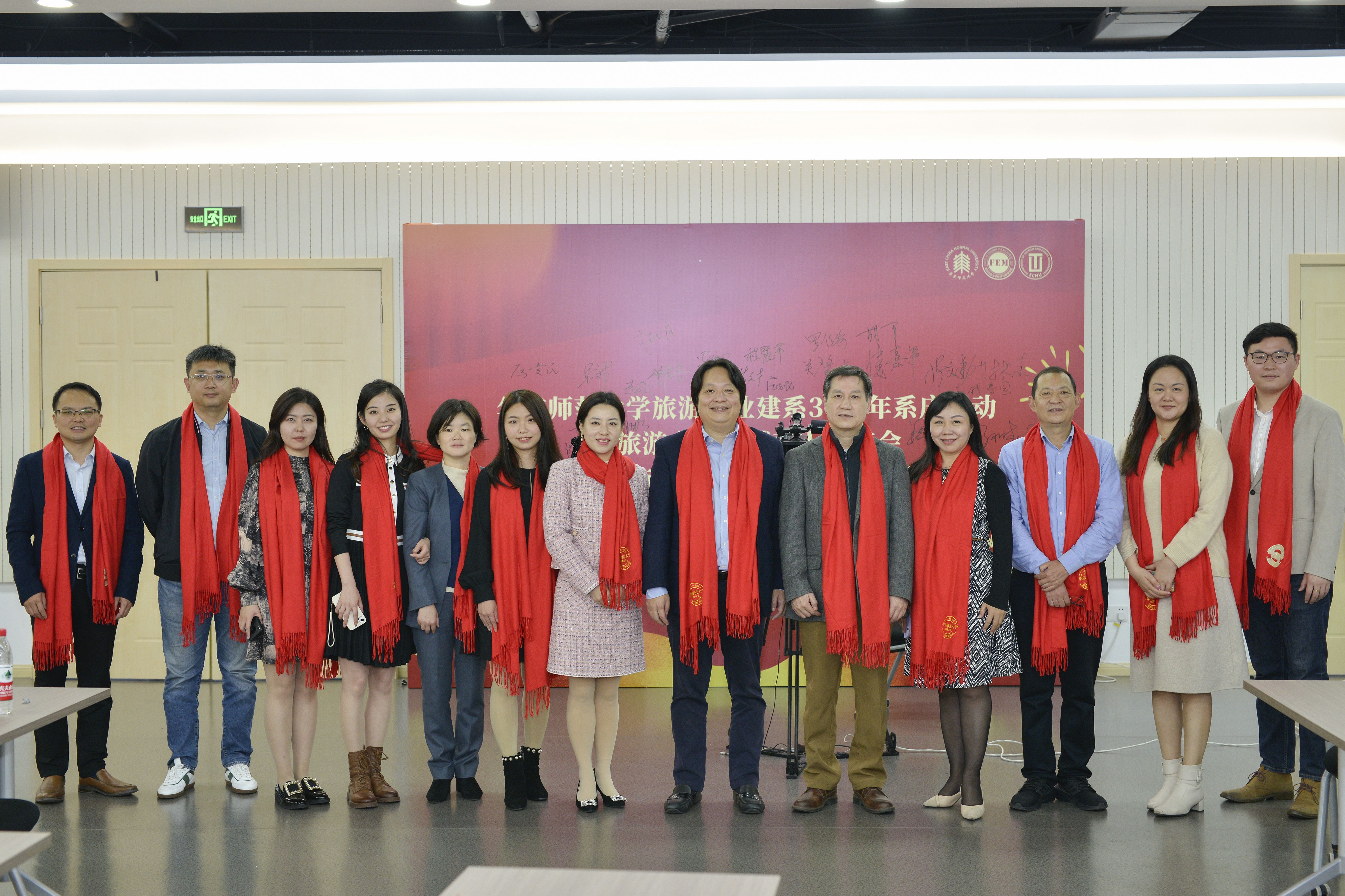 11月26日,万象城awcsport官网经济与管理学部旅游与会展系为纪念旅游专业建系30周年,举行了杰出系友学术报告会、建系30周年成果展、旅游专业卓越人才培养恳谈会、经济与管理学部旅游与会展系校友会成立仪式等系列活动。旅游与会展系全体教师及退休教师、在读学生代表、优秀毕业生代表、沪上文旅头部企业代表等50人参加线下庆祝活动,还有两千多位海内外系友同时在云端相聚。