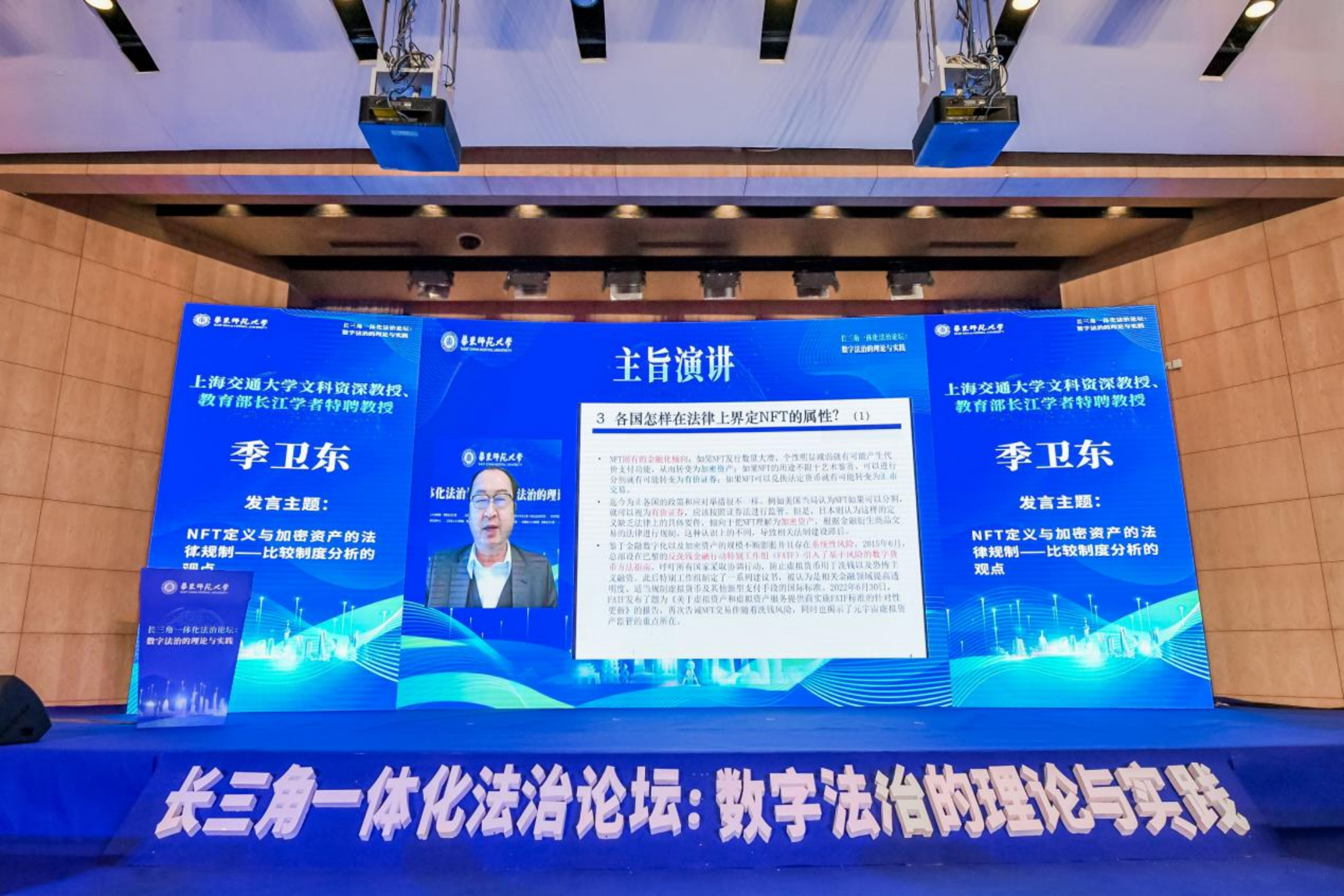 上海交通大学文科资深教授季卫东的演讲主题是“NFT定义与加密资产的法律规制——比较制度分析的观点”。季卫东教授聚焦上海数字经济中的元宇宙这一新赛道,对数字经济生态系统运行关键的NFT加密资产相关问题,以及国内外实践经验进行了分析。