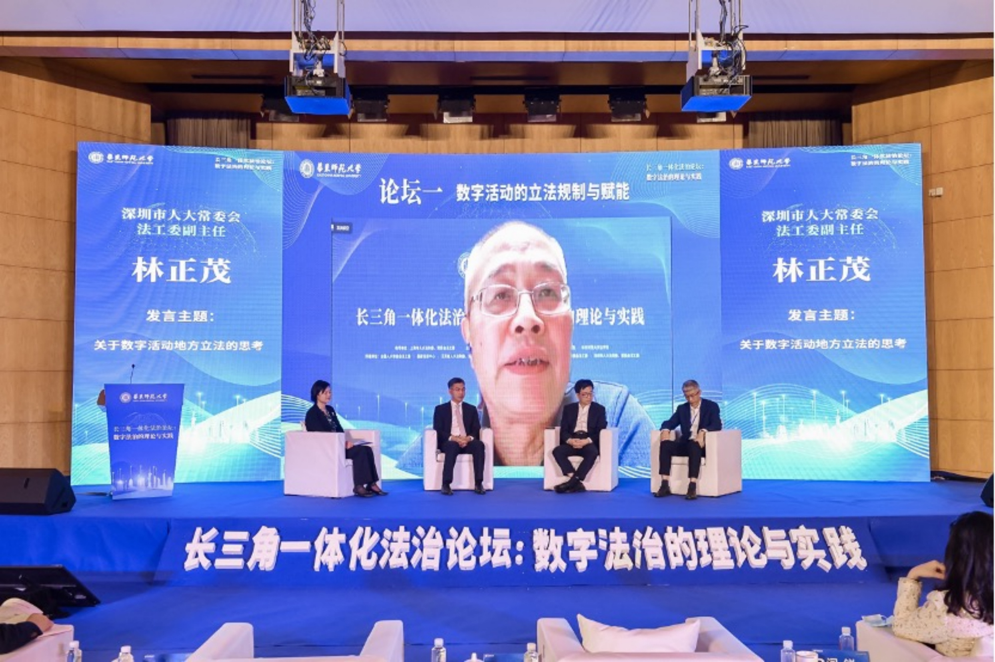 论坛二的主题研讨围绕“数字活动的产业实践与理论探索”展开,由华东师大法学院教授、长三角一体化法治硏究院副院长凌维慈主持。