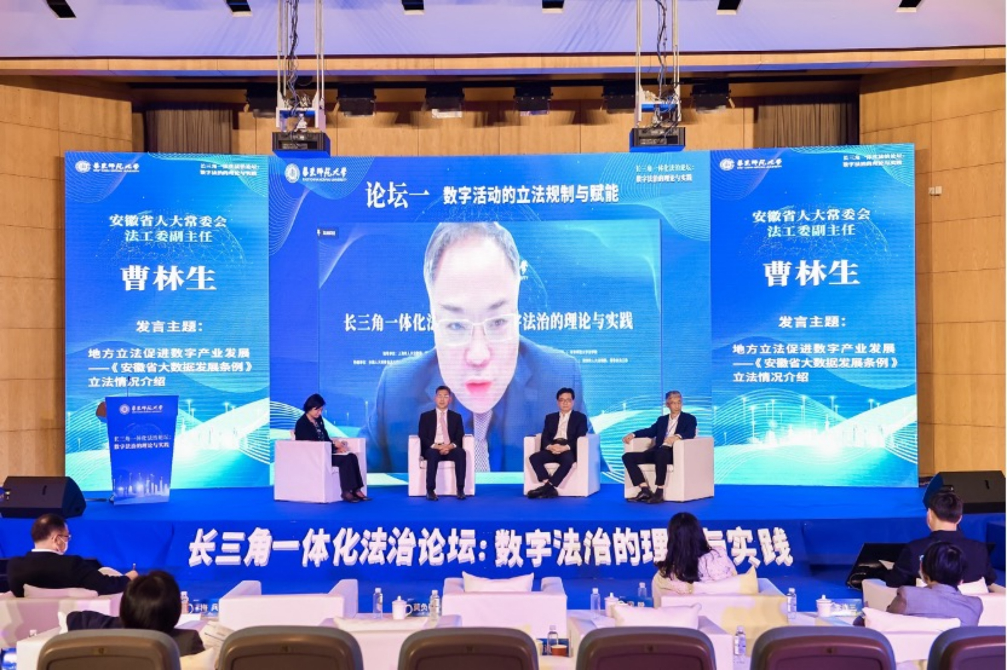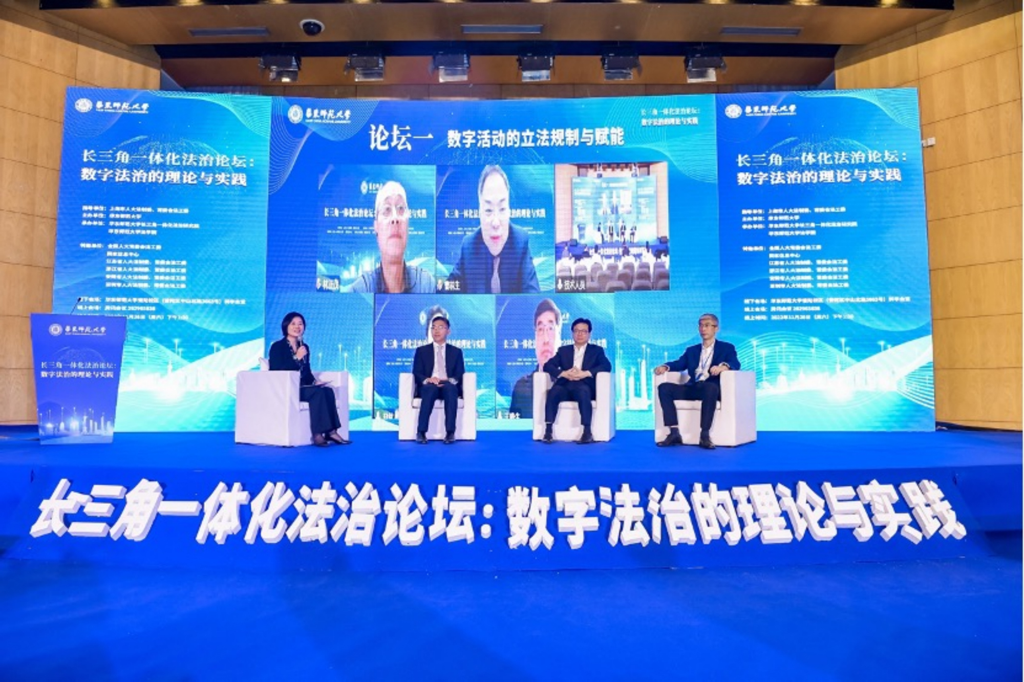 为进一步深入研讨长三角地区数字产业立法的新动态、新热点和新难点,推动我国数字法治的实践与理论发展,11月26日下午,“长三角一体化法治论坛:数字法治的理论与实践”通过线上线下相结合的方式在华东师大举办。此次论坛由上海市人大法制委、常委会法工委指导,华东师大主办,华东师大长三角一体化法治研究院与万象城awcsport官网法学院共同承办,围绕长三角地区“数字活动的立法规制与赋能”,以及“数字活动的产业实践与理论探索”等主题展开。