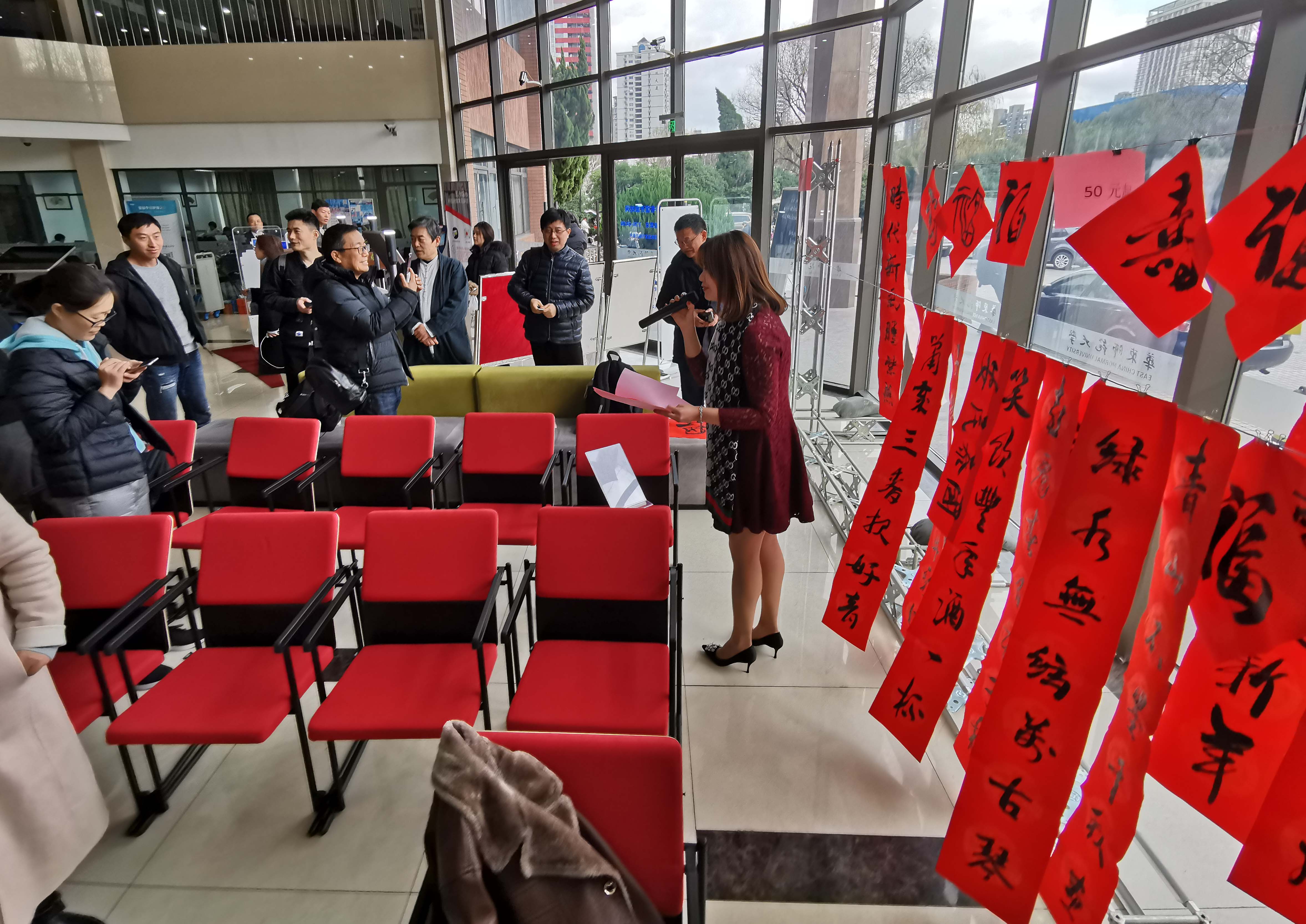 人文与社会科学研究院副院长吴文钰表示,在全球化的时代,春联是中国民俗艺术的载体,哪里有春联,哪里就有中华文化;在如今电子化的时代,写春联可以让人们暂时放下手中的电子设备,思考我们的过去和未来。华东师大历来重视传统文化的传承创新,在楹联的传承上,去年图书馆携手社会发展学院共同入选上海市“楹联习俗”非物质文化传承人。他希望将来华东师大逢大事、喜事,都有楹联的身影。