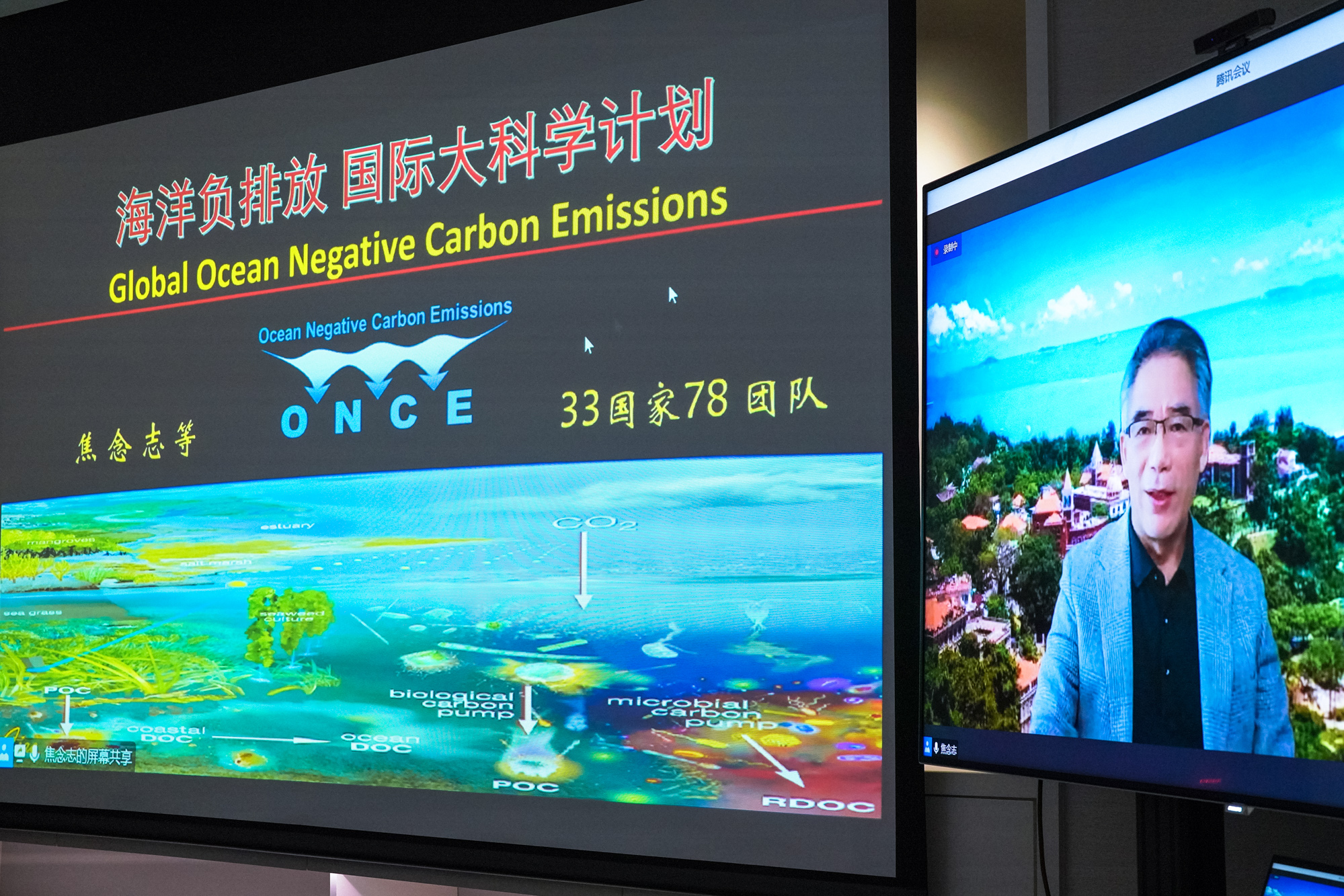 焦念志院士针对蓝碳研究和发展,分享了由他倡议的海洋负排放国际大计划(ONCE计划)。这项计划是联合国海洋十年行动计划和联合国十年倡议计划框架(UN Decade)中的国际大科学计划。焦念志表示“蓝碳中心”的成立将对“ONCE”计划形成有力支持。