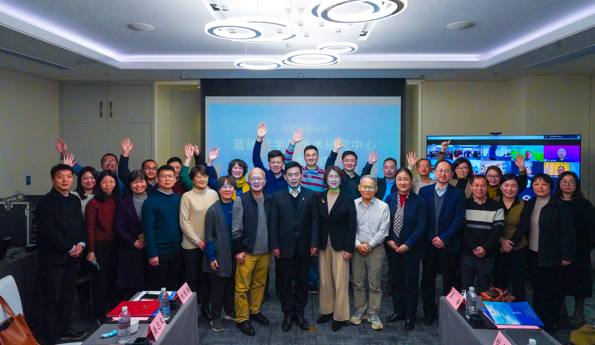 华东师大科技处处长杨海波为“蓝碳中心”第一届科学委员会主任焦念志院士及委员们颁发聘书。科学委员会成员均来自科研机构、管理部门和企业单位,将共同把握中心发展方向、提供决策咨询,以推进蓝碳产学研协同创新。