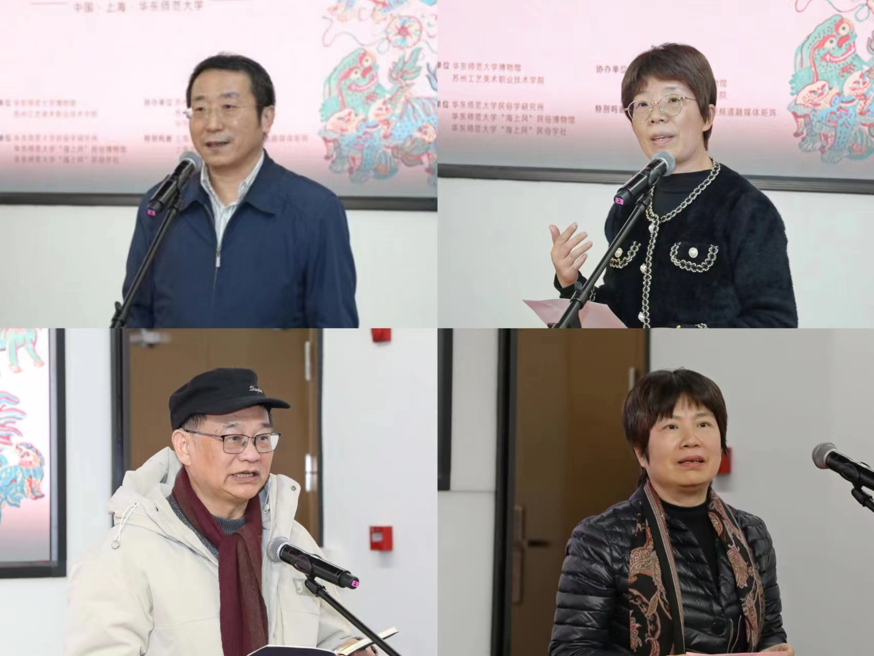 苏州桃花坞木刻年画社社长刘超、传承人申婷,上海明珠美术馆馆长李丹丹,上海东方电视台东方影视频道主任陈曦,上海筷箸文化促进会会长徐华龙,华东师大博物馆常务副馆长夏祥伟、社会发展学院党委书记熊琼、非物质文化遗产传承与应用研究中心主任田兆元、民俗学研究所所长徐赣丽等参加开幕仪式。社会发展学院民俗学2021级博士研究生谢圣心主持开幕式。