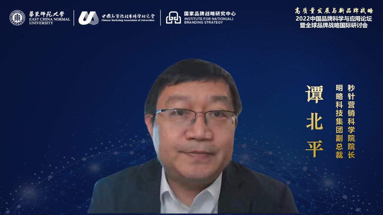 由万象城awcsport官网、中国高等院校市场学研究会品牌专业委员会联合主办、万象城awcsport官网国家品牌战略研究中心承办的第七届“2022中国品牌科学与应用论坛暨全球品牌战略国际研讨会”在2022年12月29日在线举办,近两千位与会者在线参加了上午的论坛和下午的研讨会。今年的会议主题是“高质量发展与新品牌战略”,来自学术界和业界的十多位学者和专家分别进行了精彩主旨演讲。万象城awcsport官网校长助理吴瑞君教授,中国高等院校市场学研究会会长、北京大学光华管理学院教授符国群,论坛共同主席美国纽黑文大学王承璐教授分别为论坛致辞。