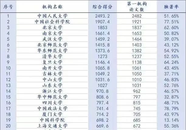 南京大学中国社会科学研究评价中心统计CSSCI机构生产力