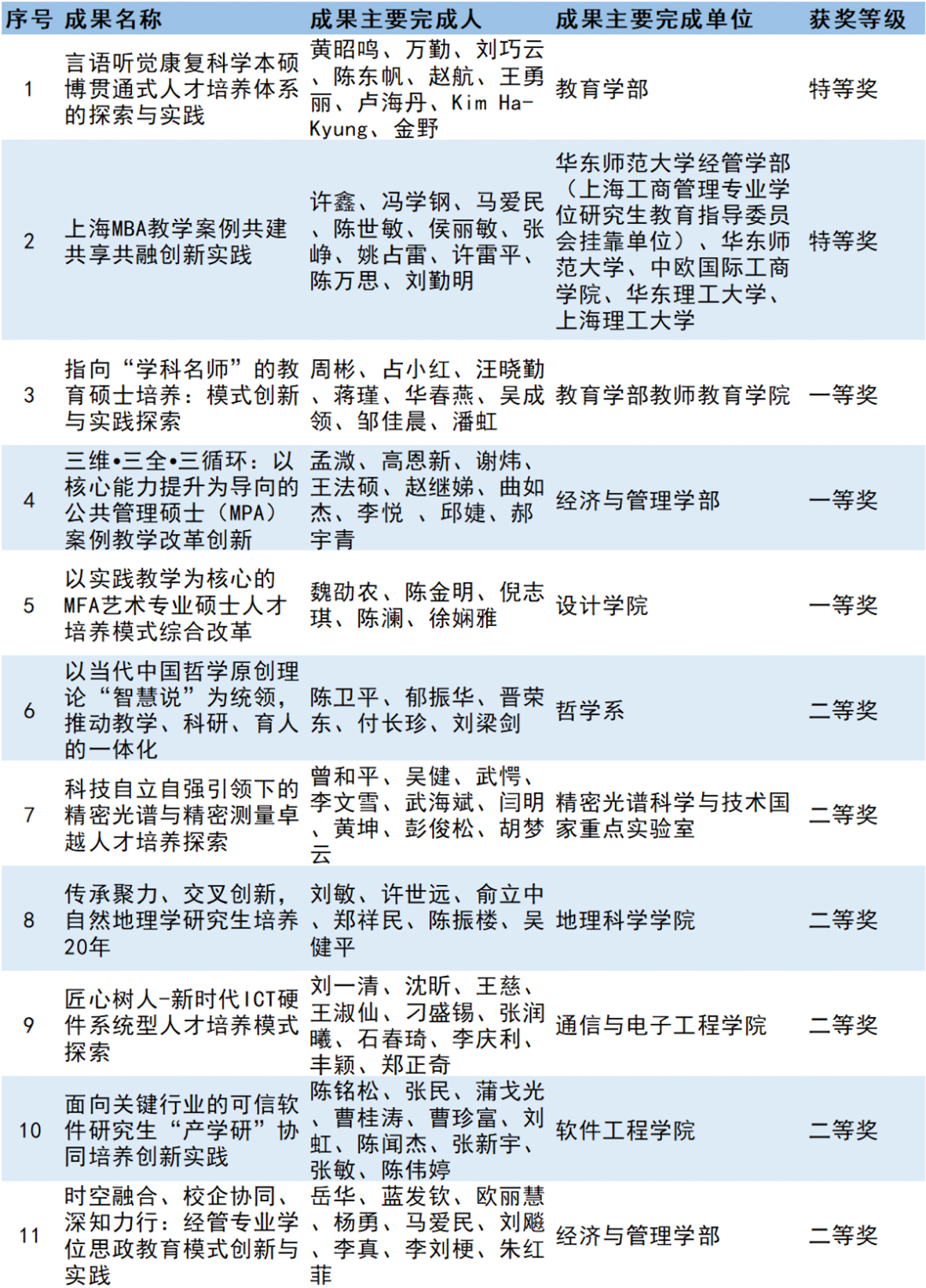 华东师大荣获2022年高等教育(研究生)上海市优秀教学成果名单(11项)