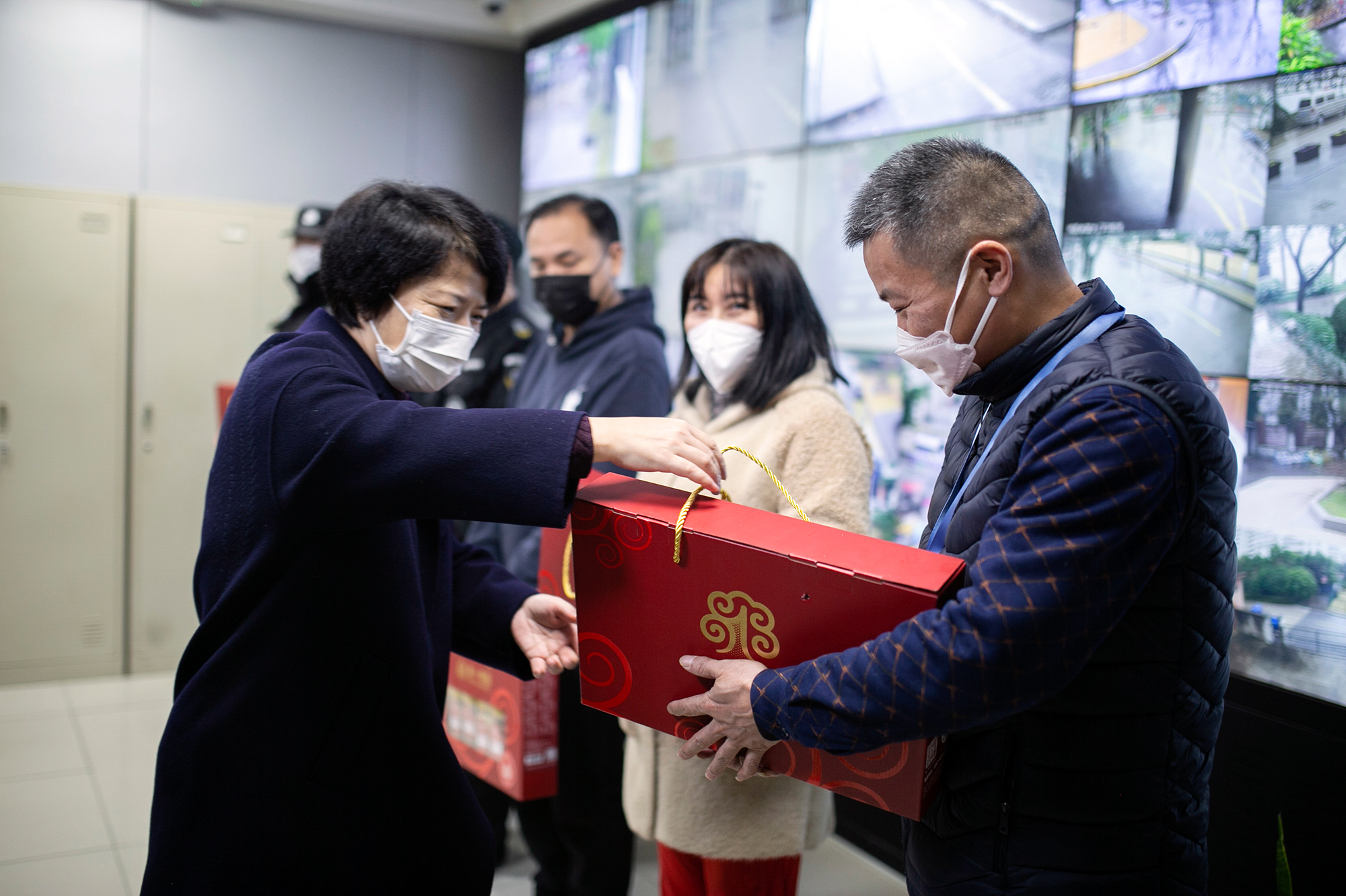 校领导来到总值班室、门岗、车队、校医院、保卫处、报修大厅等校园各一线岗位,慰问寒假留校坚守在工作岗位的安全管理、后勤保障和医疗工作人员,互致问候,感谢大家一年来的辛勤付出和积极贡献,嘱咐大家康复后要注重身体健康、劳逸结合,并为他们一一送上节日慰问品。