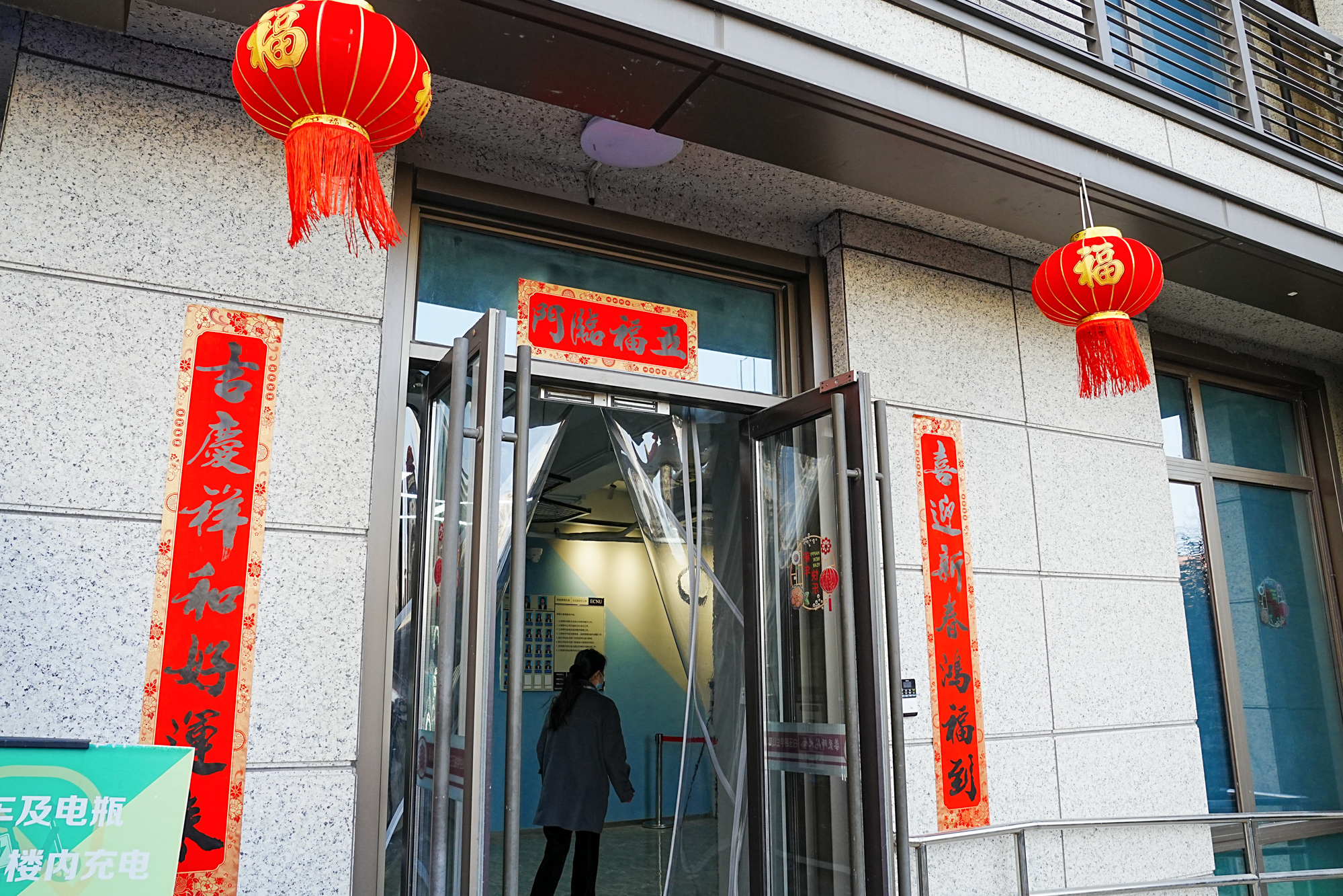 今年寒假两校区共有800余位保卫、后勤员工留校工作,他们坚守岗位,也布置好了节日的校园。
