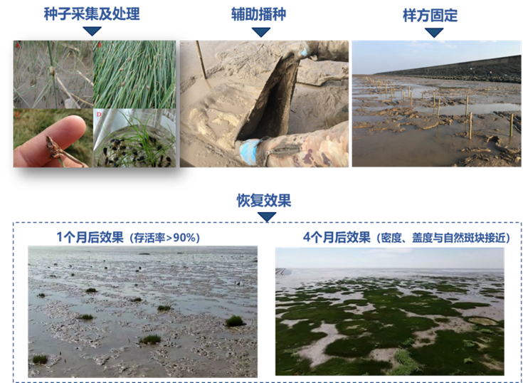 南汇东滩实施海三棱藨草人工辅助播种技术1年后的修复效果