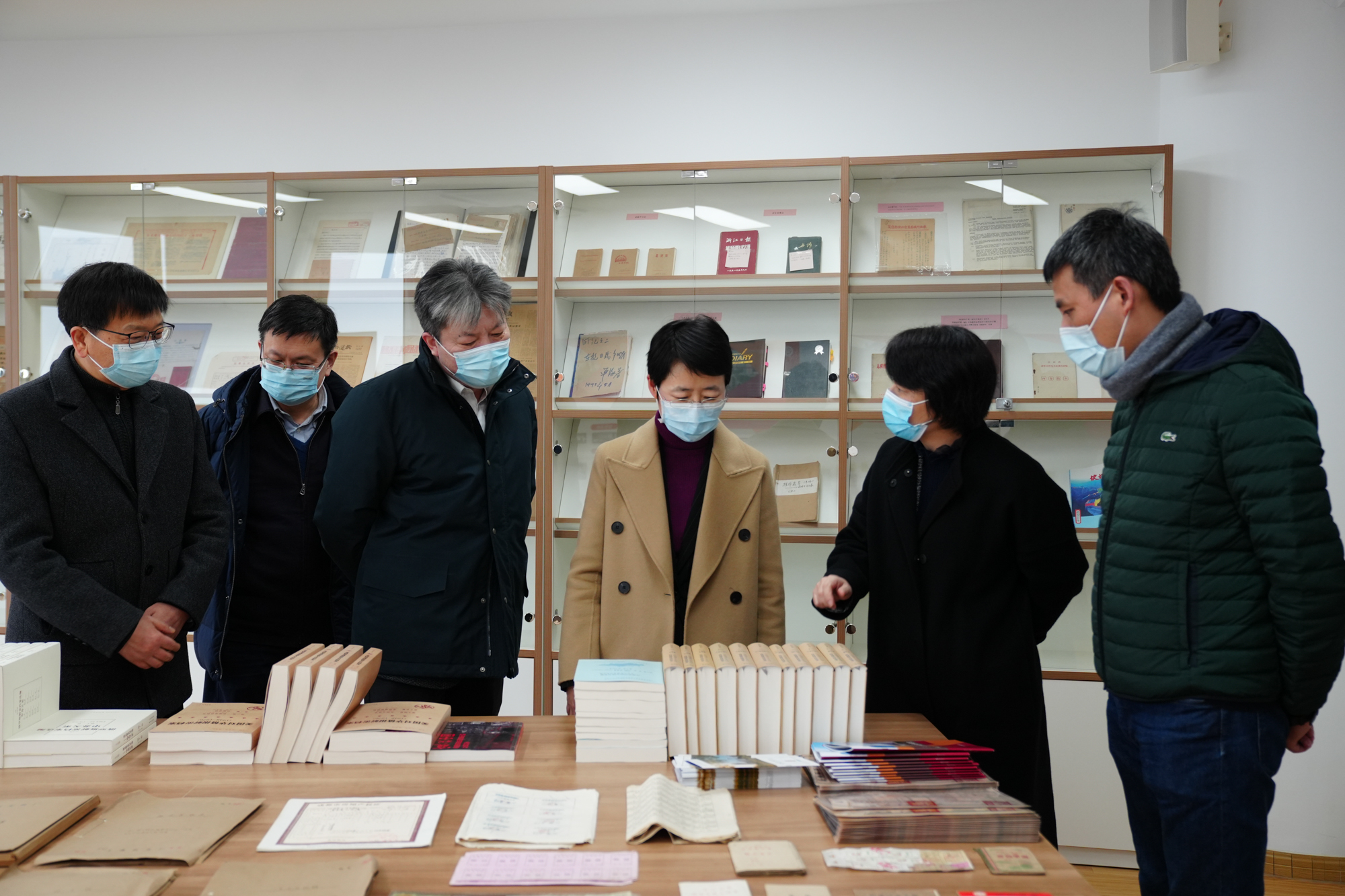 在社会主义历史与文献研究院, 解冬一行观看了冷战时期中外经济史相关史料展出,仔细倾听研究院院长孟钟捷关于馆藏文献以及文献收集、整理与利用情况的介绍。