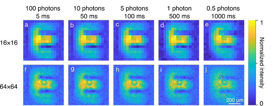 图 4:单光子水平极弱照度下超灵敏中红外单像素成像