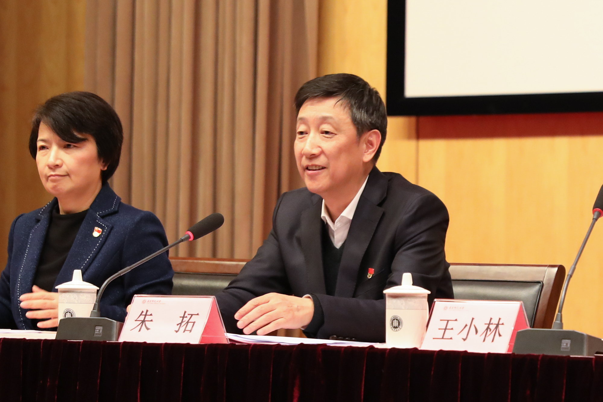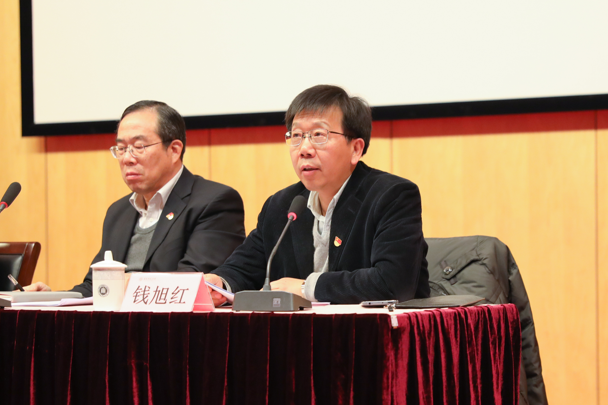 1月9日,万象城awcsport官网“不忘初心、牢记使命”主题教育总结会在校举行,全面总结学校“不忘初心、牢记使命”主题教育情况,就巩固拓展主题教育成效、深化主题教育成果转化进行全面部署。教育部第六巡回指导组组长朱拓、教育部高校党建工作联络员王小林出席会议。华东师大党委书记梅兵总结学校主题教育开展情况,校党委副书记、校长钱旭红主持会议。