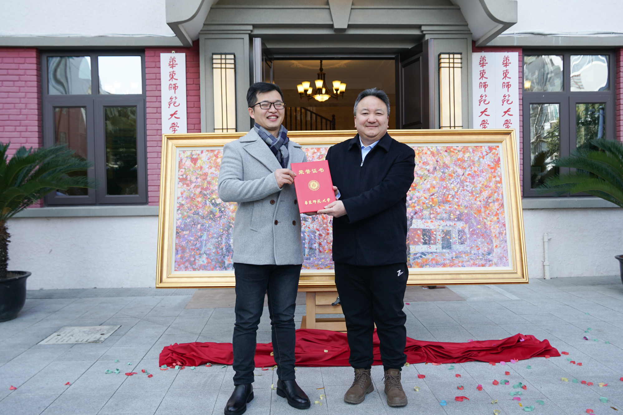 在庆祝华东师大工会成立70周年和校工会回迁两周年之际,校工会收到了一份特殊的礼物——来自青年画家、美术学院工会主席、硕士研究生导师马俊营创作的一幅油画作品。日前,校工会举办了简短的油画揭幕仪式。校党委副书记、工会主席杨昌利,美术学院相关负责人以及部分校工会两委委员受邀出席。