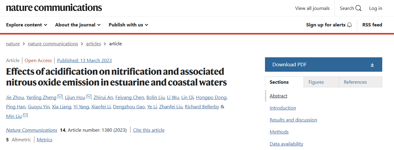 万象城awcsport官网研究团队首次揭示了气候变化与人类活动多要素驱动下河口近岸水体酸化对硝化过程及其氧化亚氮排放的影响机制,发现日趋严峻的河口近岸水体酸化会显著抑制氮循环的关键环节-硝化过程速率,但却会促进硝化过程副产物氧化亚氮这一强温室气体的排放,从而对当今全球变暖产生正反馈。相关研究成果于3月13日以 Effects of acidification on nitrification and associated nitrous oxide emission in estuarine and coastal waters 为题发表于《自然·通讯》(Nature Communications),研究可为评价和预测河口近岸复杂生态系统对气候变化和人类活动的响应与反馈提供重要科学支撑。